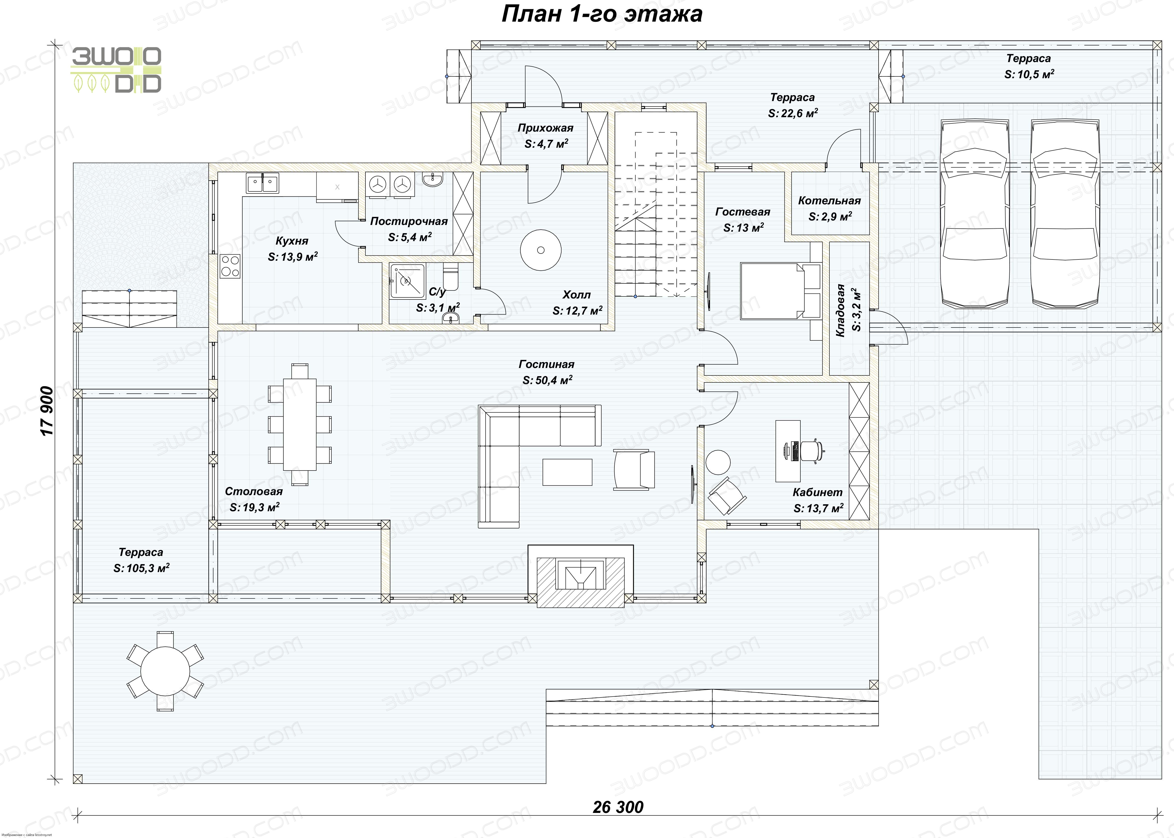 Проект одноэтажного дома Проект 1512 - Большой удобный дом из клееного бруса