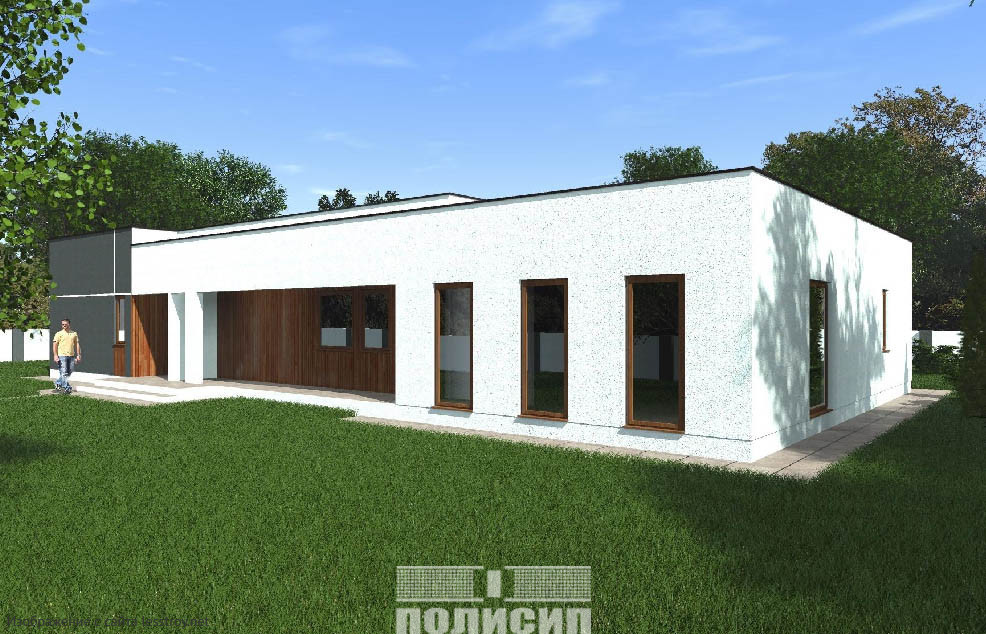 Одноэтажный дом из SIP-панелей площадью 233 м² с двумя спальнями и нестандартной крышей. Металлочерепица и лаконичный стиль подчеркивают его функциональность. Удобный и стильный вариант для загородной жизни.Характеристики