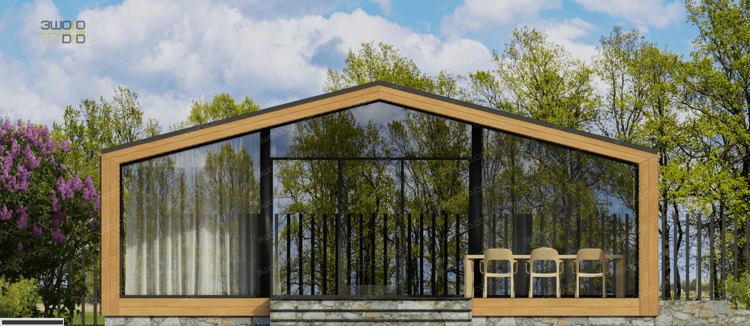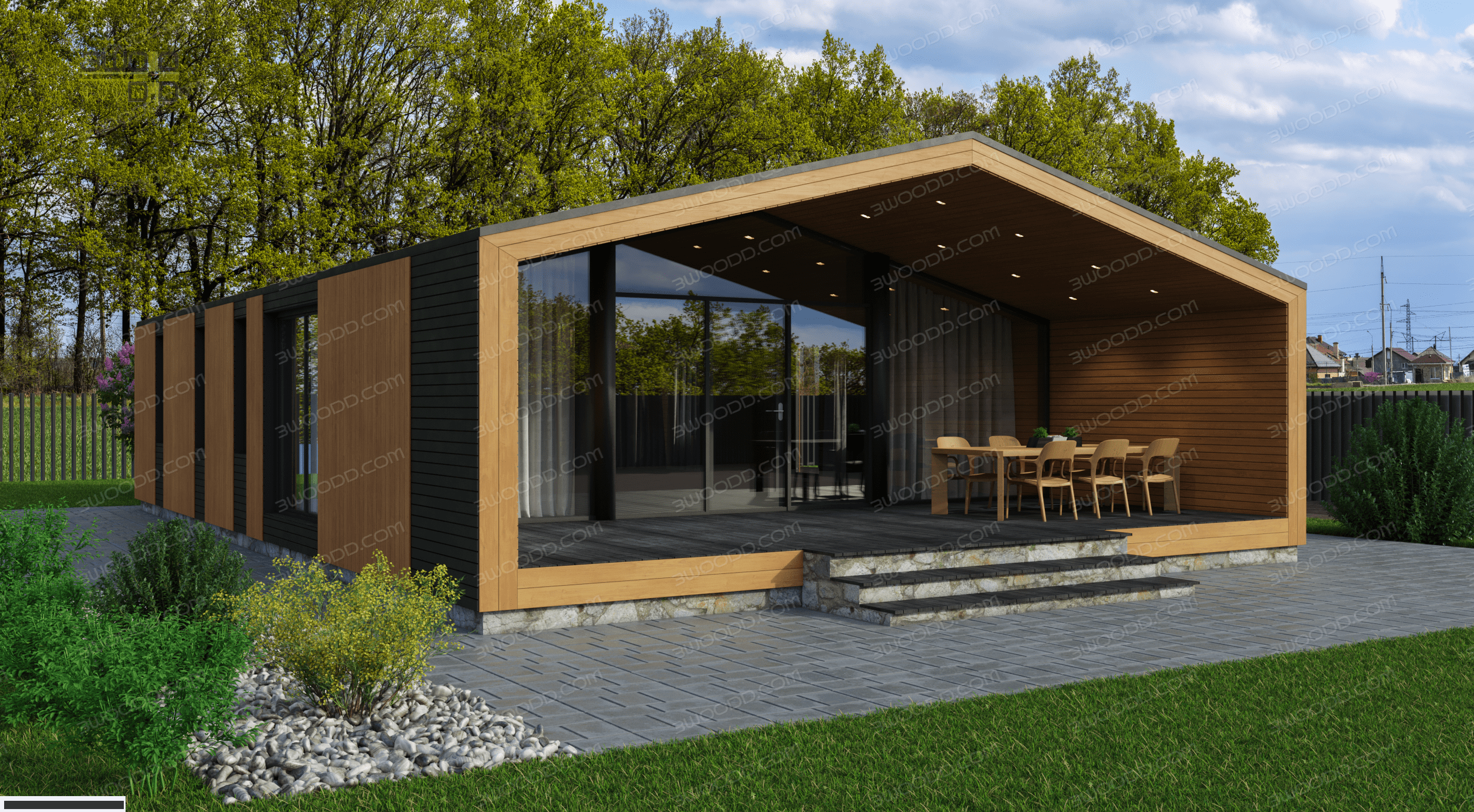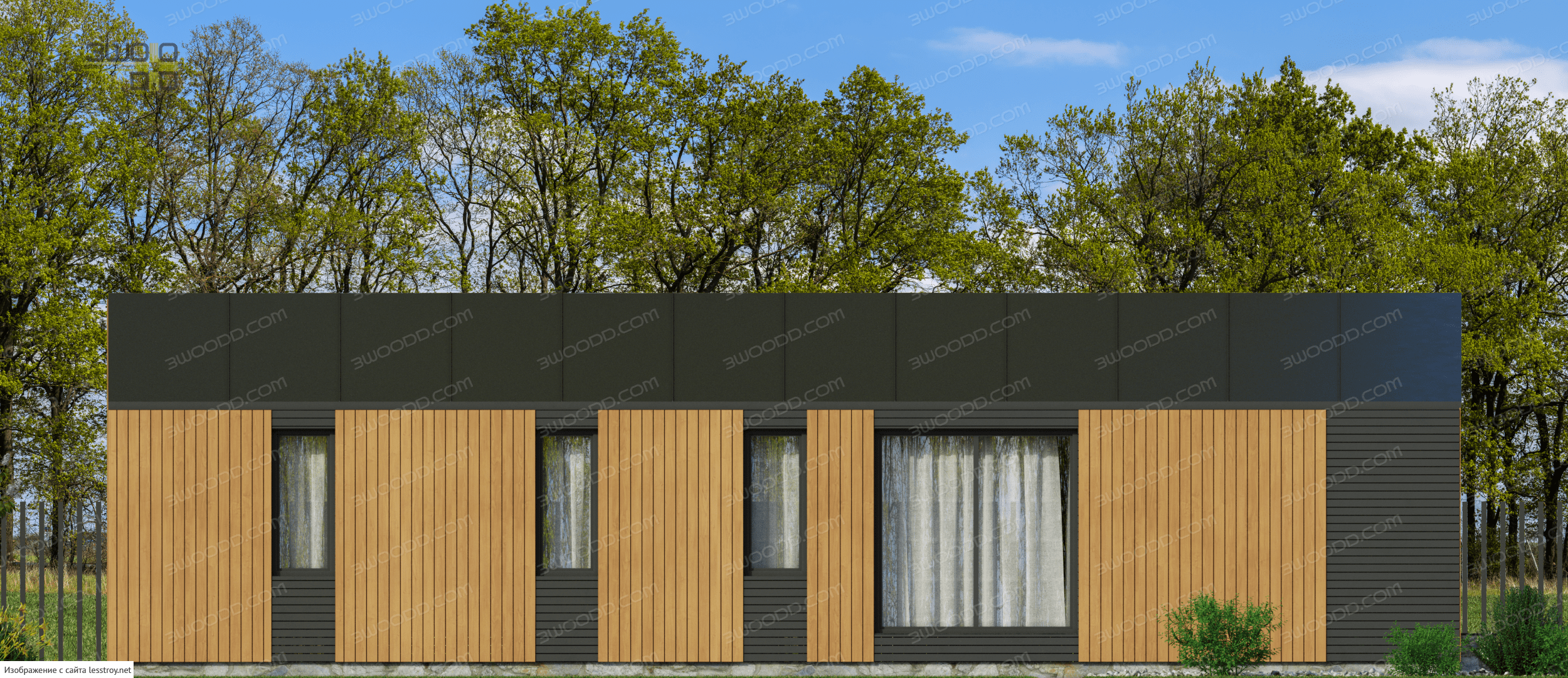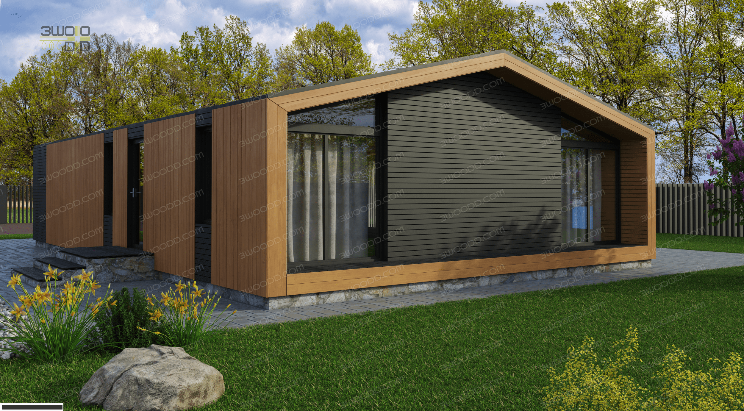 Проект одноэтажного дома 3051 - каркасный дом с плоской крышей с двумя спальнями