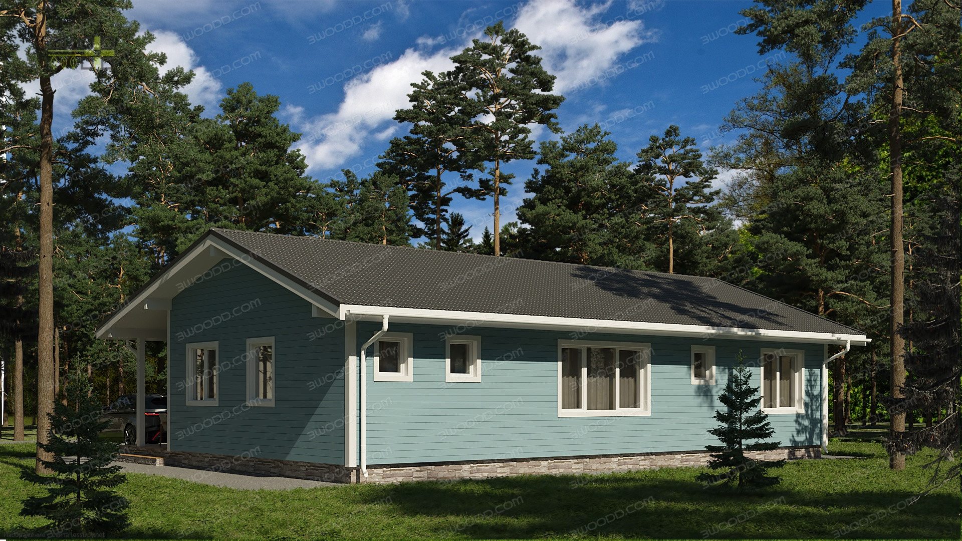 Проект одноэтажного дома Проект 7032 - одноэтажный каркасный дом с сауной