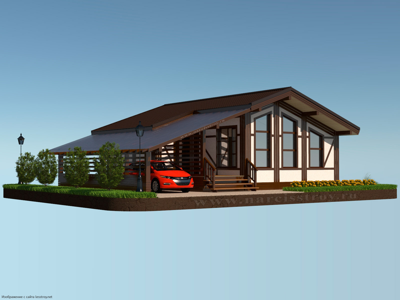 Проект одноэтажного дома Проект №9К - одноэтажный дом 9х12 (108м2) с навесом под парковку.