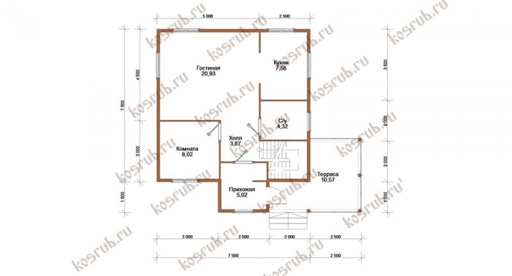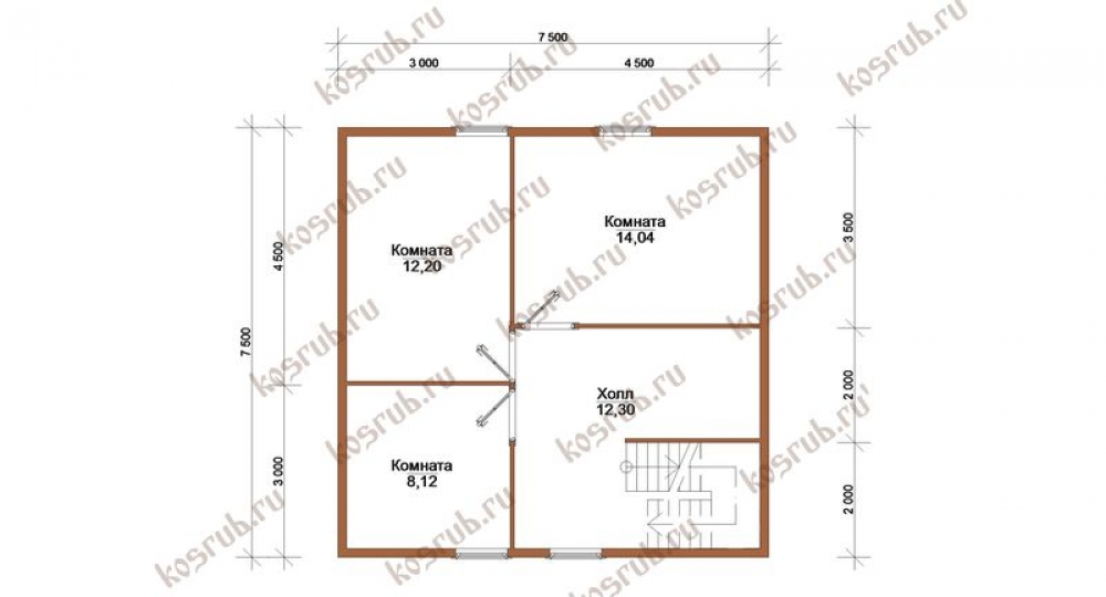Проект одноэтажного дома Проект брусового дома 7,5х8,5 ДБ-74 Лесстрой