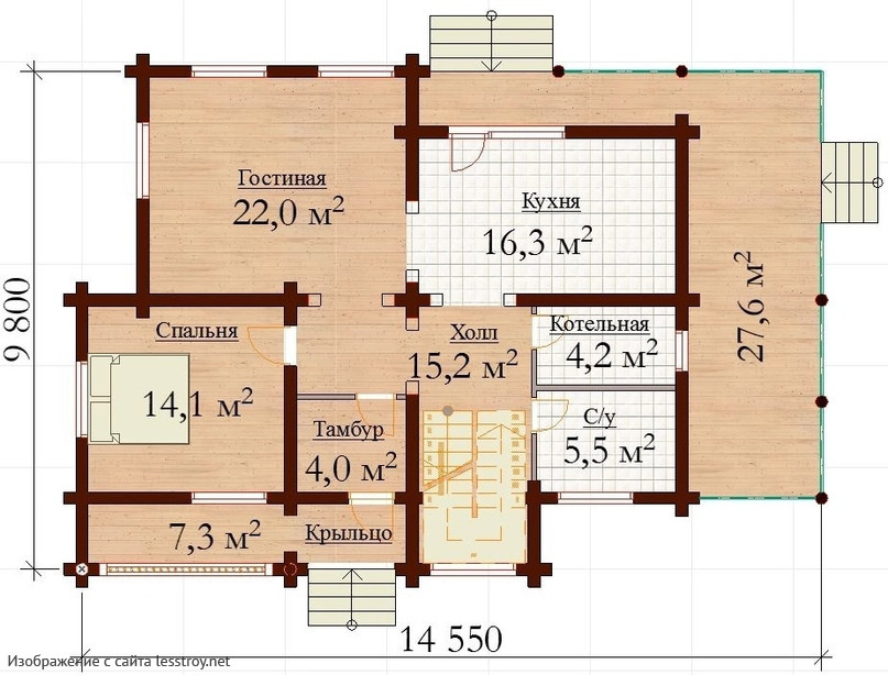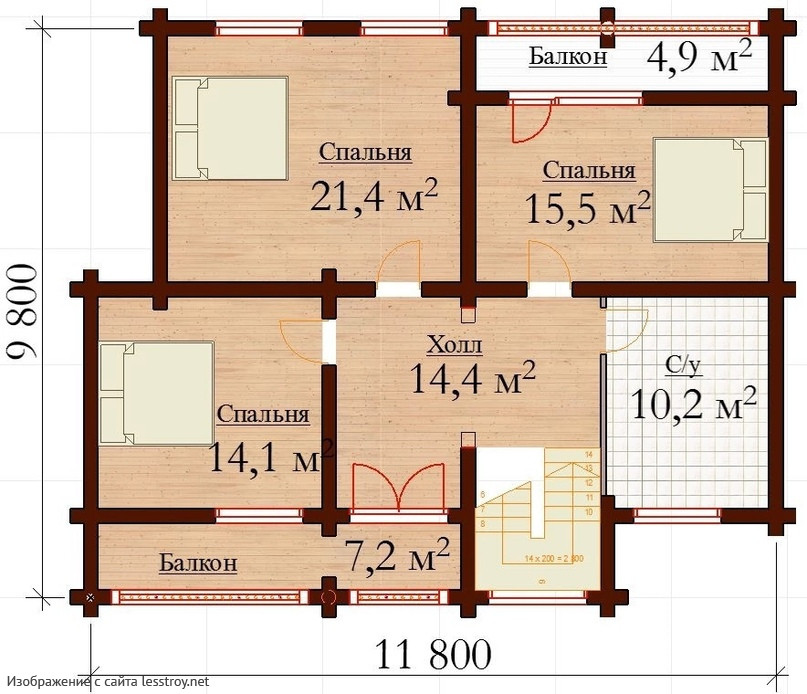 В этом проекте учтены как эстетические предпочтения, так и практические нужды семьи.Жить в 90 м² — это удобно, красиво и рационально. Бруса делает дом надёжным при любой погоде. В качестве кровли использована профнастил — материал, проверенный временем. Наличие 2 спальни удовлетворит запросы семьи с детьми.Характеристики