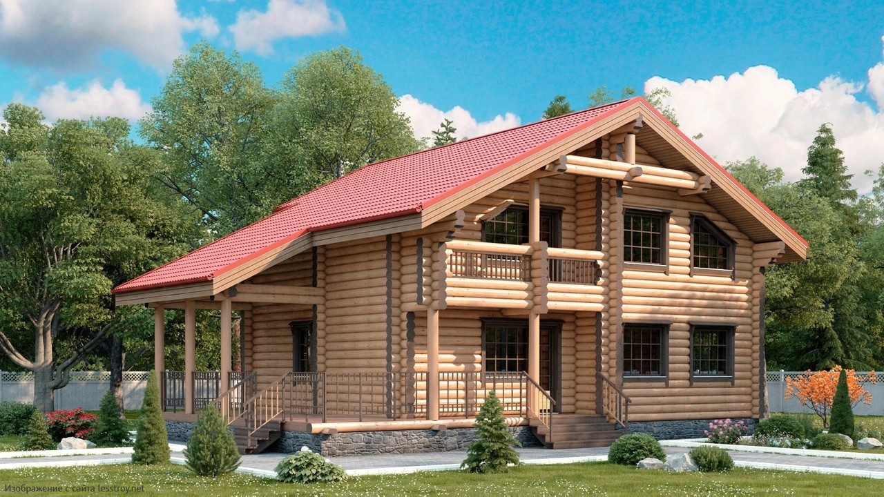 Проект двухэтажного дома Проект дома из оцилиндрованного бревна СИЯНИЕ, диаметр 300 мм