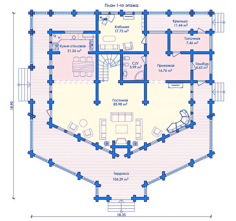 Фасады, которые легко содержать в чистоте. Жить в 182 м² — это удобно, красиво и рационально. Дом спроектирован в духе дома в стиле русский. Материал кровли — рубероид, что добавляет зданию индивидуальность. Стены из бревна хорошо держат тепло и защищают от шума.Характеристики