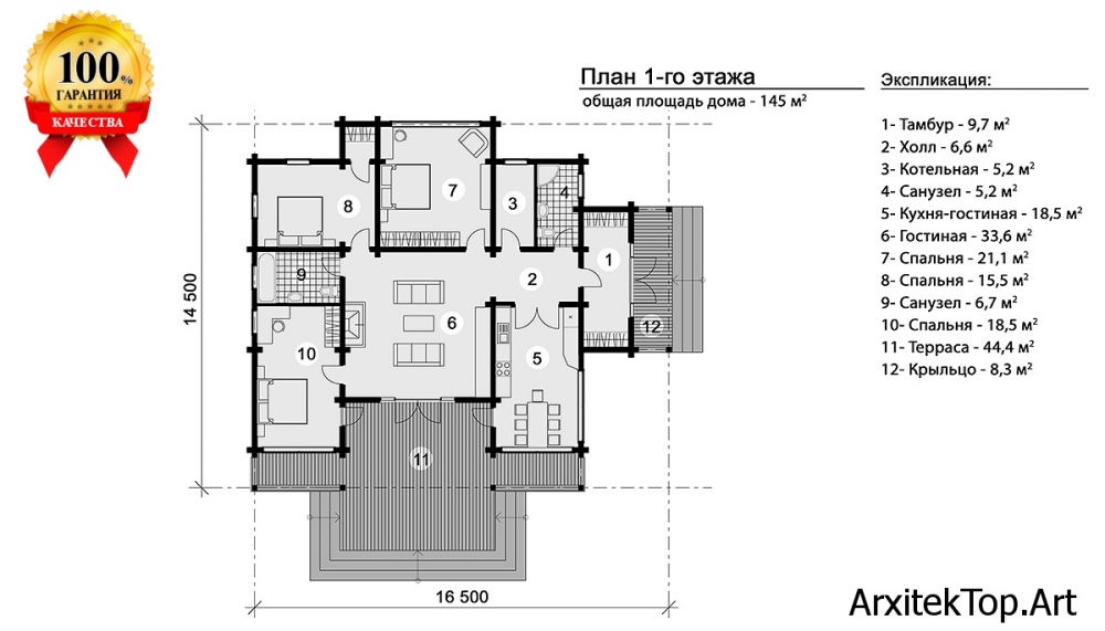 В этом здании премиальный дизайн сочетается с продуманной эргономикой. Пространство в 105 м² продумано до мелочей. Конструкция из Брус обеспечивает прочность и долговечность. В доме предусмотрено 3 спальни, что важно для комфорта. Одноэтажная рациональная планировка организует пространство максимально эффективно.Характеристики