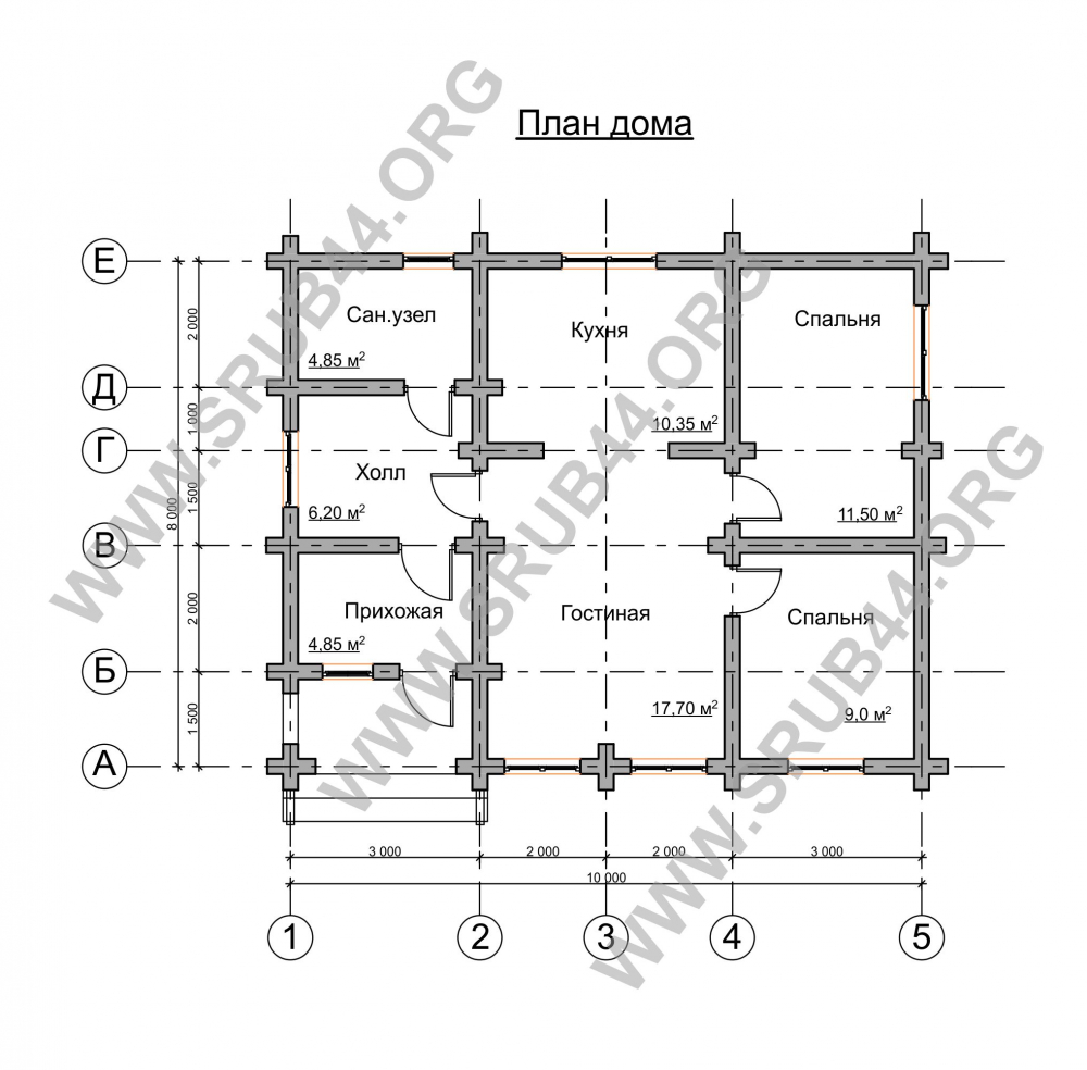 Проект одноэтажного дома ПРОЕКТ ДОМА 10х8 №39