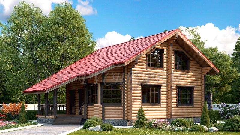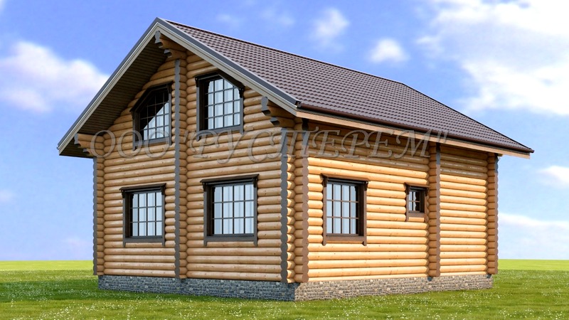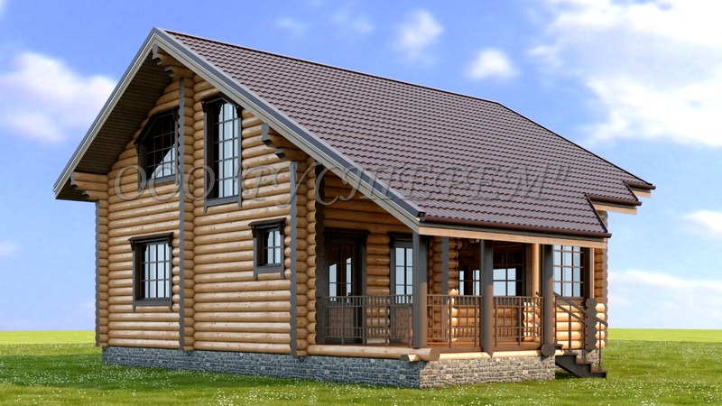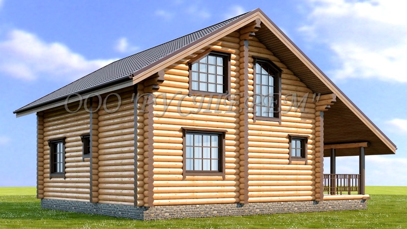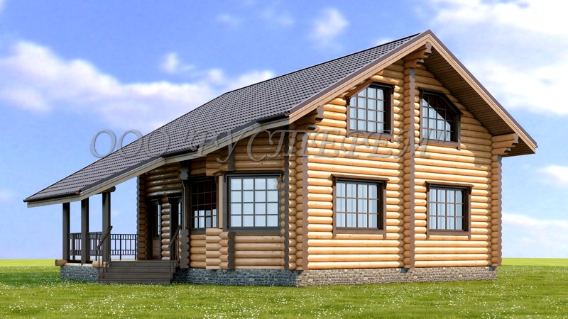 Проект двухэтажного дома Коттедж из оцилиндрованного бревна. Проект Ветрово.