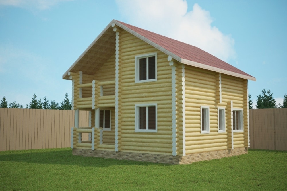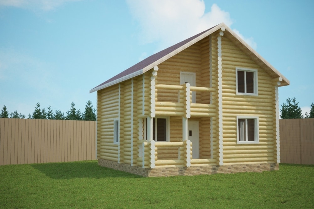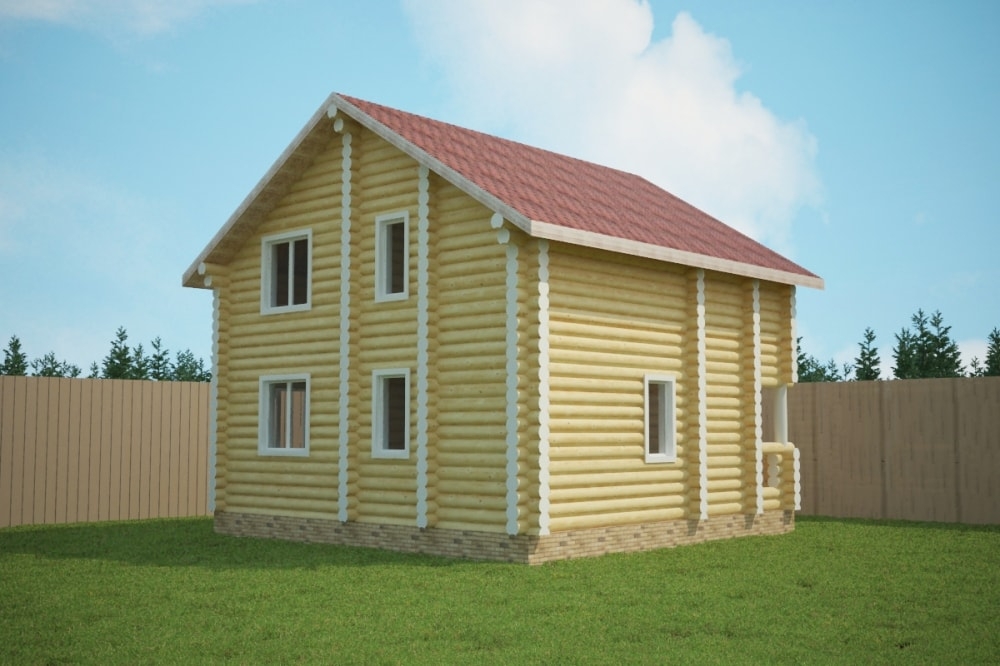 Проект двухэтажного дома Дом 6х7 из оцилиндрованного бревна ДБ-14