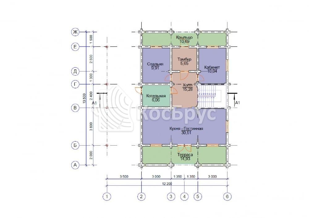 Проект двухэтажного дома Проект дома 8.7х13.5 м с террасой 3.5х13.5 м «Градницы»