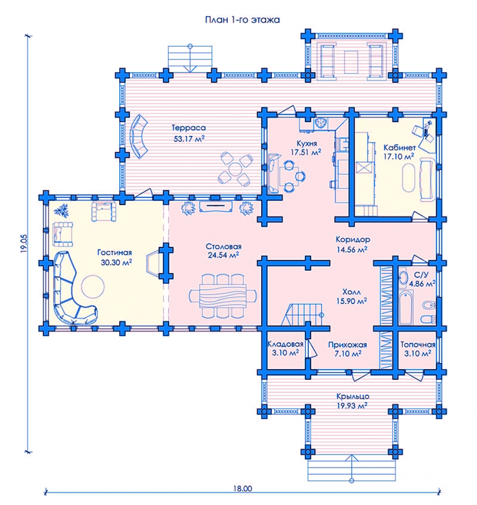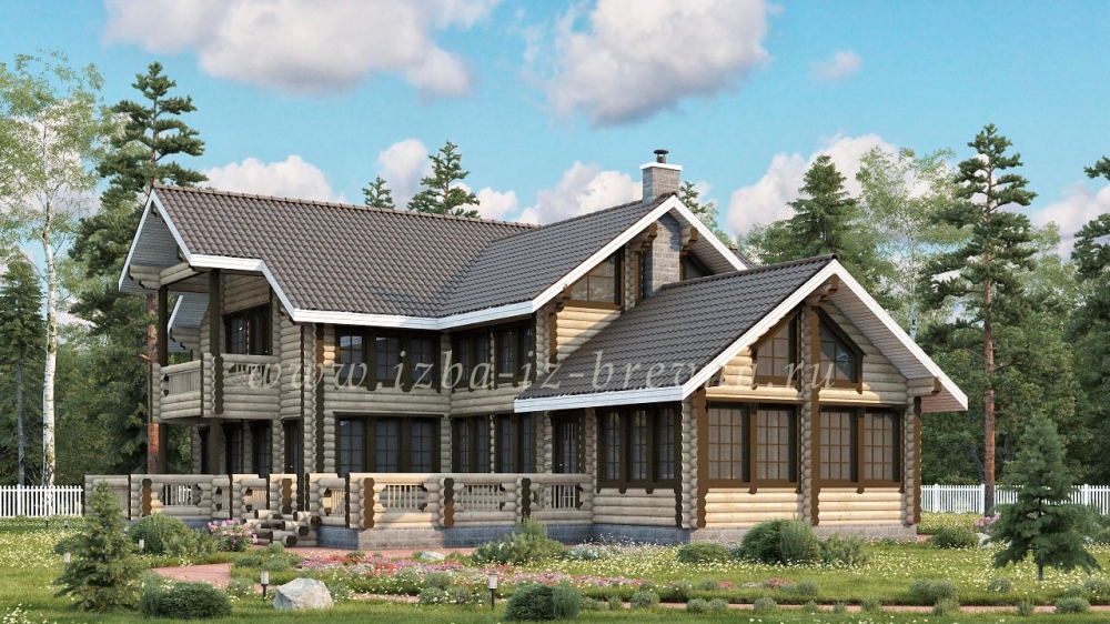 Проект двухэтажного дома Дом из оцилиндрованного бревна ОЦБ-24