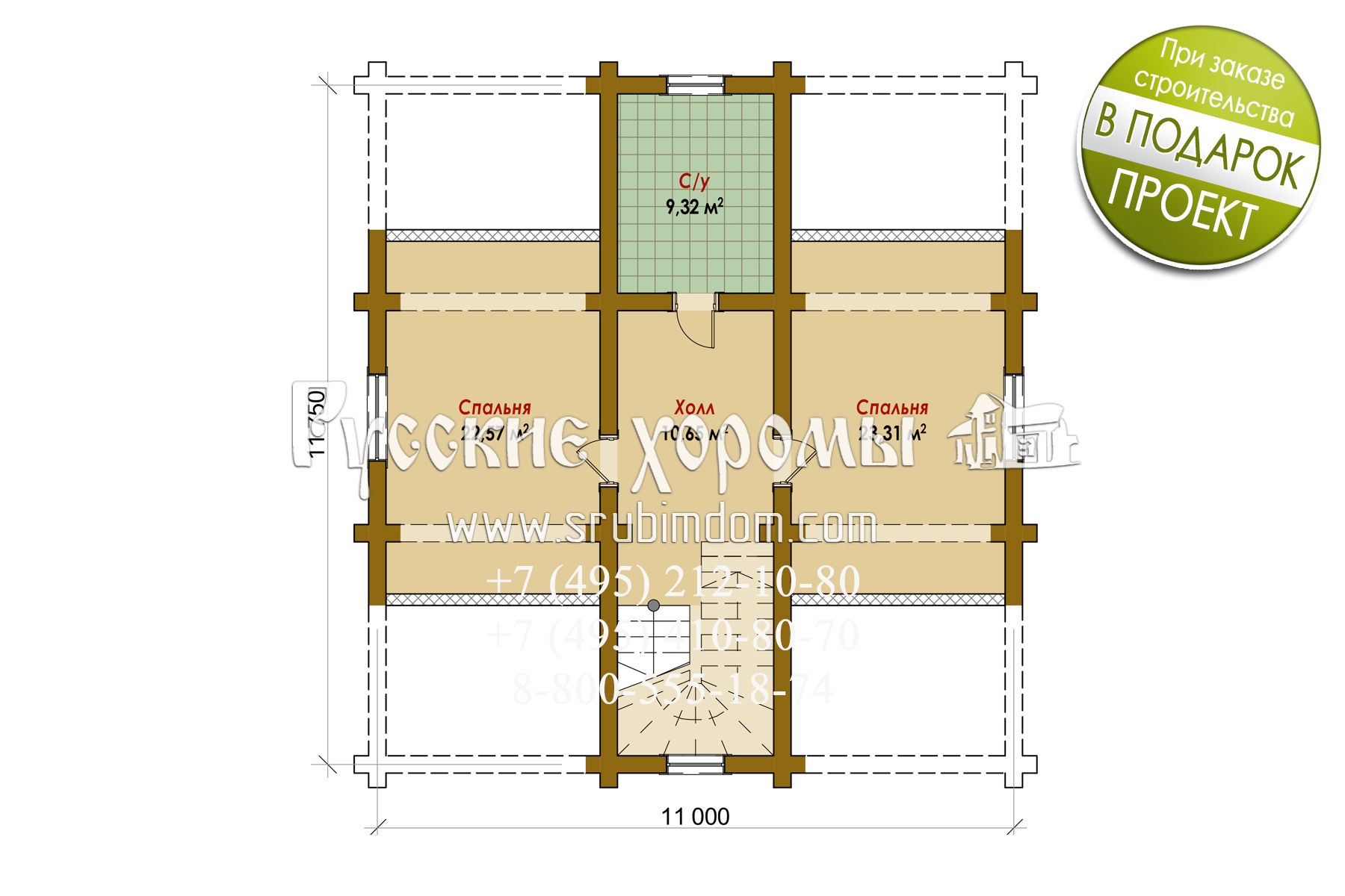 Проект двухэтажного дома Проект дома из бревна ручной рубки САЛЬВАДОР, диаметр 300 мм