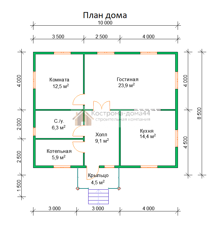Проект одноэтажного дома Дом из бруса 9 x 12 м | проект Д-35