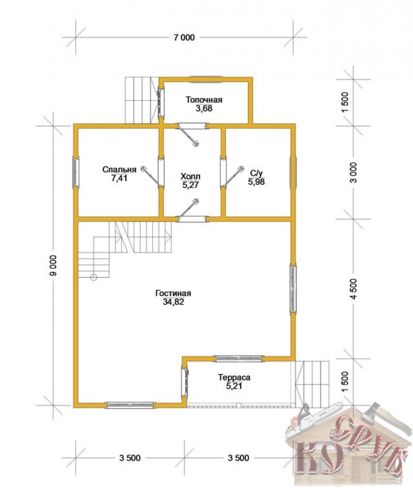 Проект одноэтажного дома Проект дома из бруса 7х9 ДБ-71 Полуторник