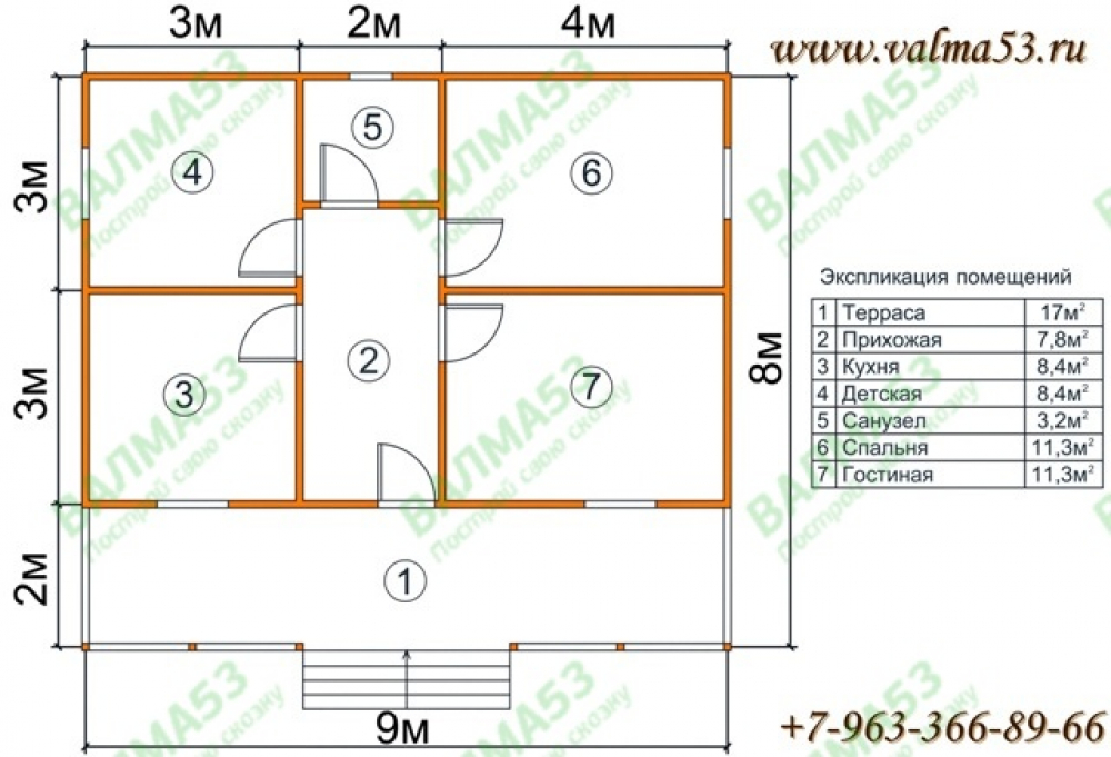Проект одноэтажного дома Проект дома из бруса 8х9 - СОКРОВИЩНИЦА