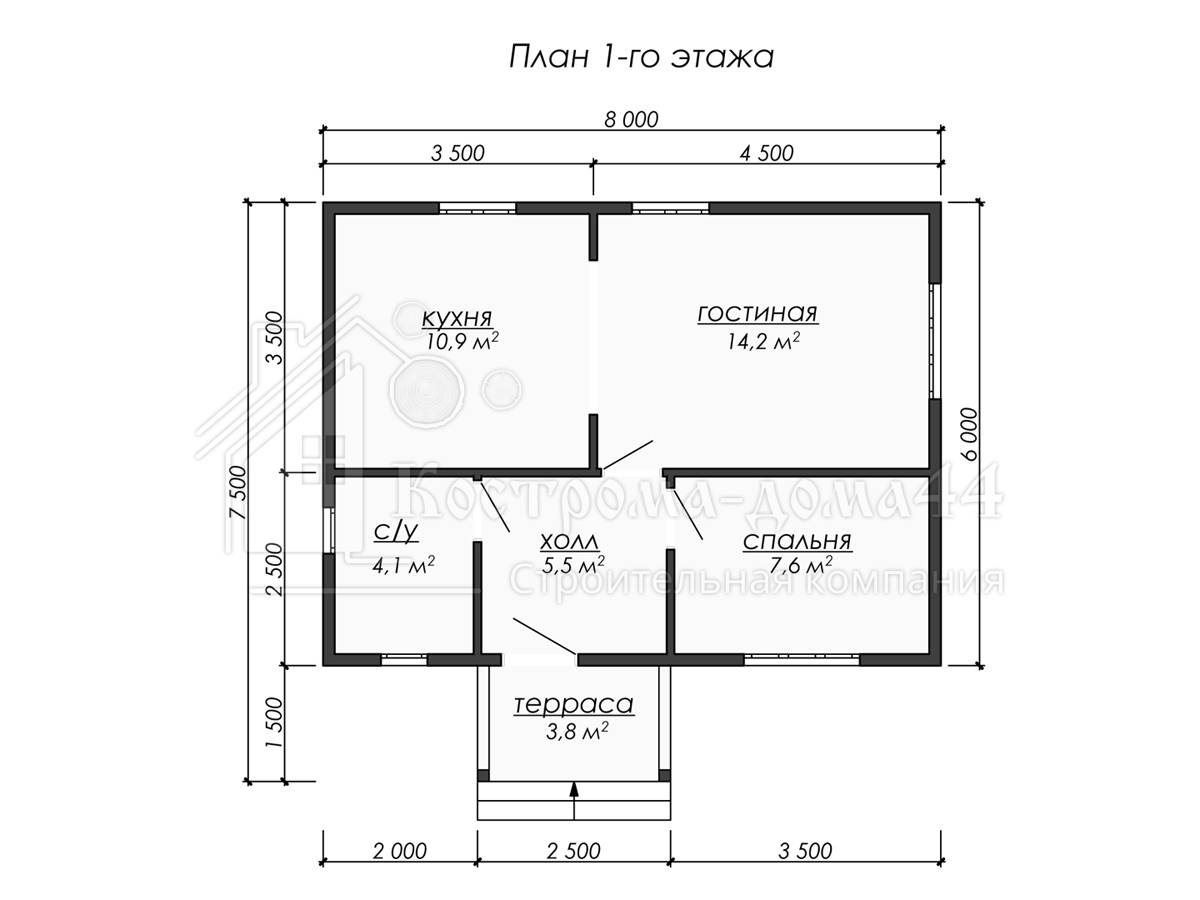 Проект одноэтажного дома Проект дома из бруса 8x6 (ДБ-55)