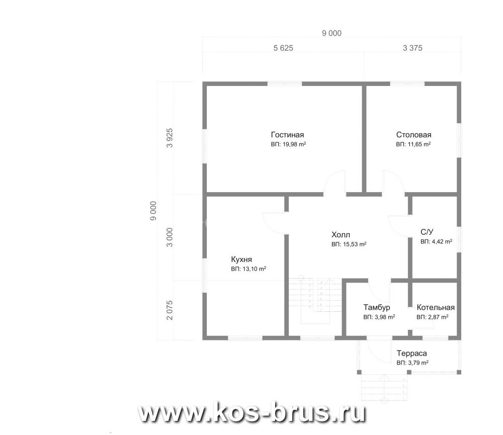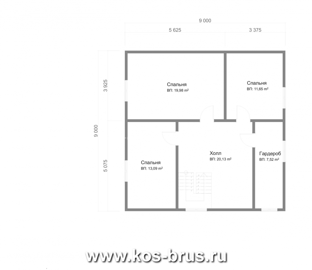Проект двухэтажного дома Проект дома из бруса 9.0х9.0 м «Заречный»