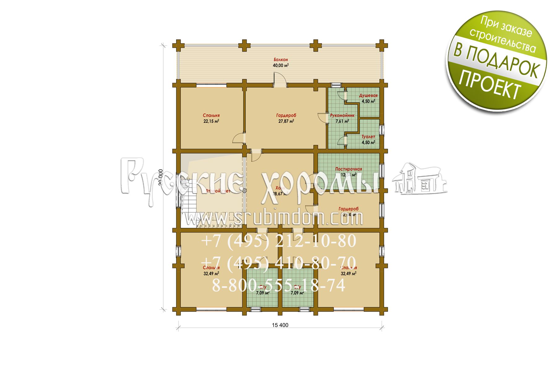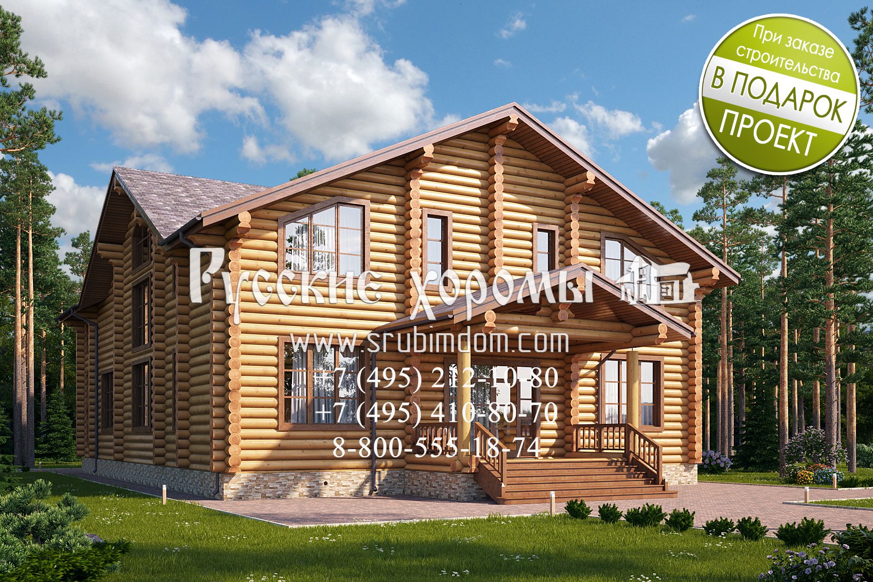 Проект двухэтажного дома Проект дома из оцилиндрованного бревна ОСКАР, диаметр 320 мм