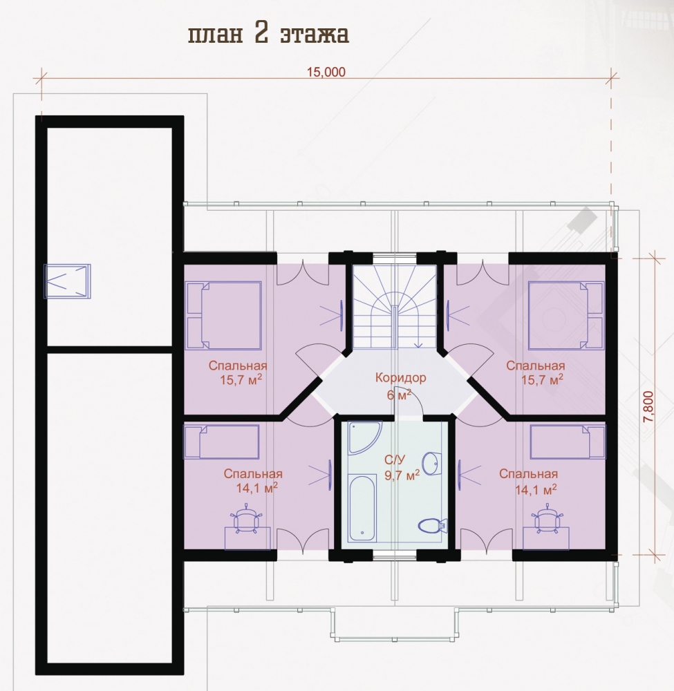 Проект двухэтажного дома ПРОЕКТ ДОМА ИЗ ПРОФ.БРУСА 15 НА 7,8