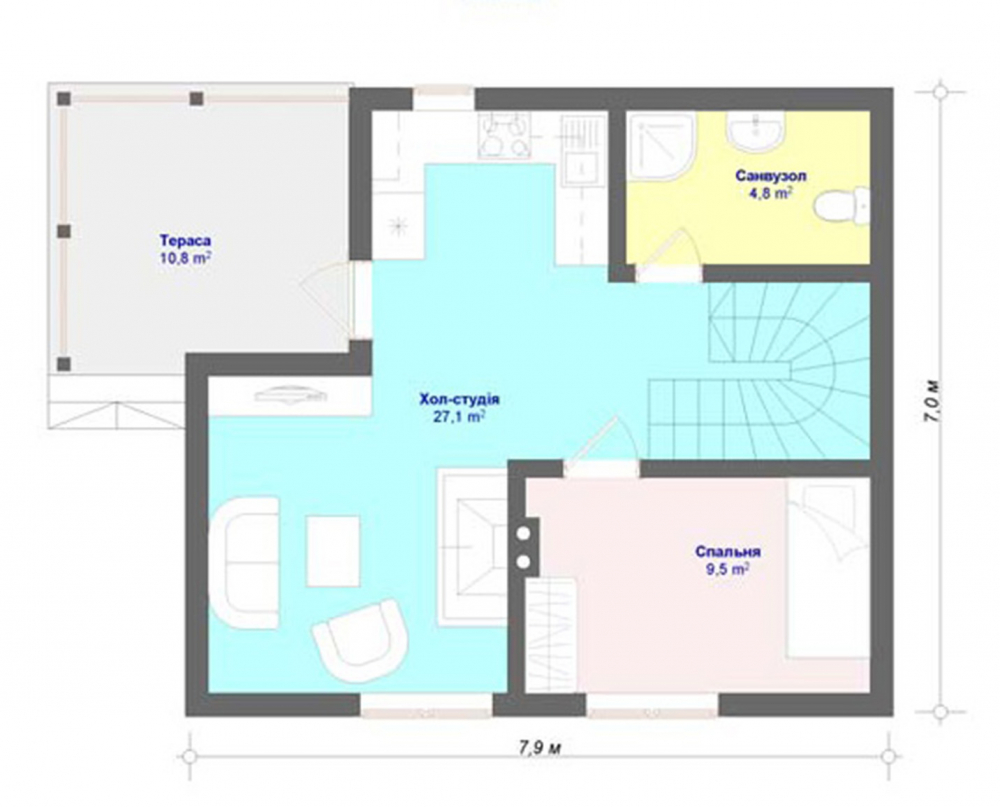 Проект двухэтажного дома ПРОЕКТ ДОМА ИЗ ПРОФ.БРУСА 7,9 НА 7