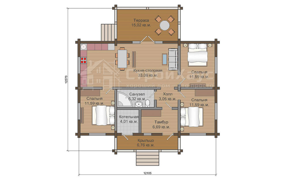Проект одноэтажного дома Дом из бруса ДБ-66 проект Технология