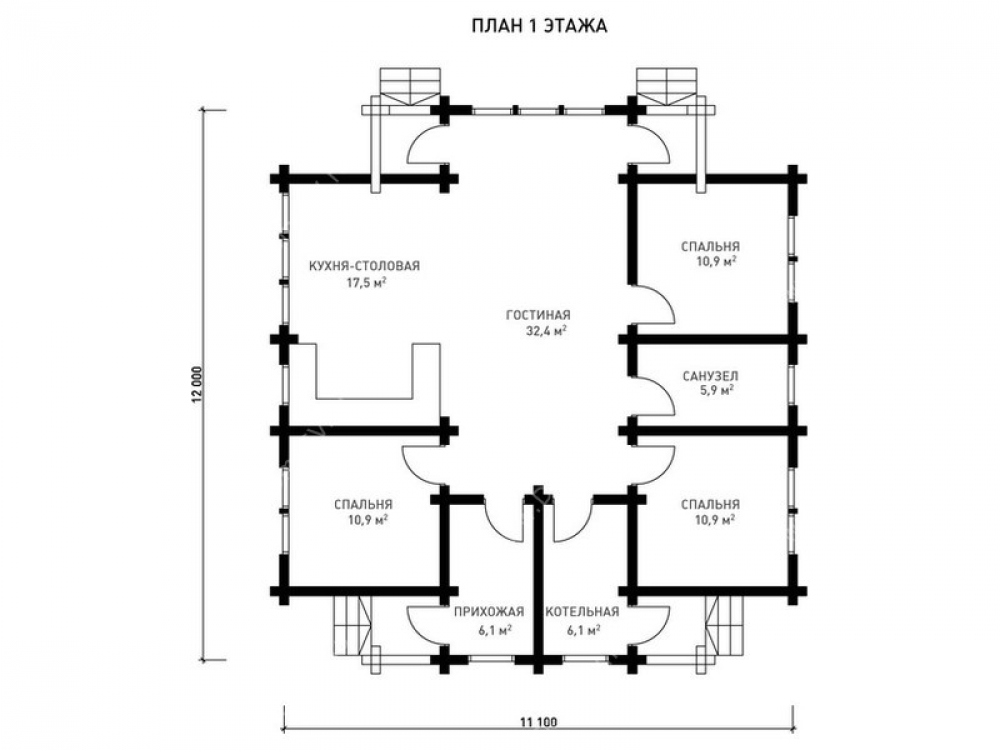 - Тип кровли: Дома с четырехскатной крышей (вальмовой)