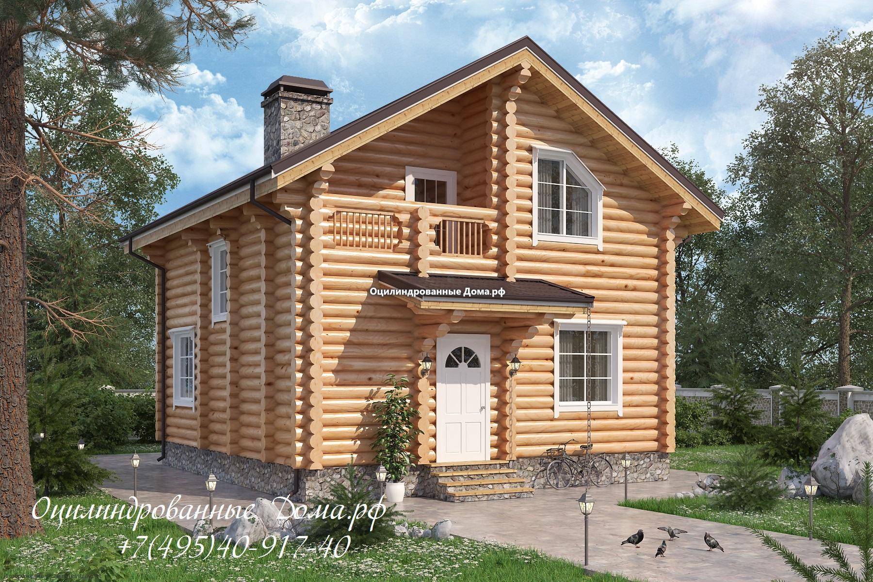 Проект двухэтажного дома Проект дома с мансардой из оцилиндрованного бревна Крекшино - 144м2(8м х 9м)