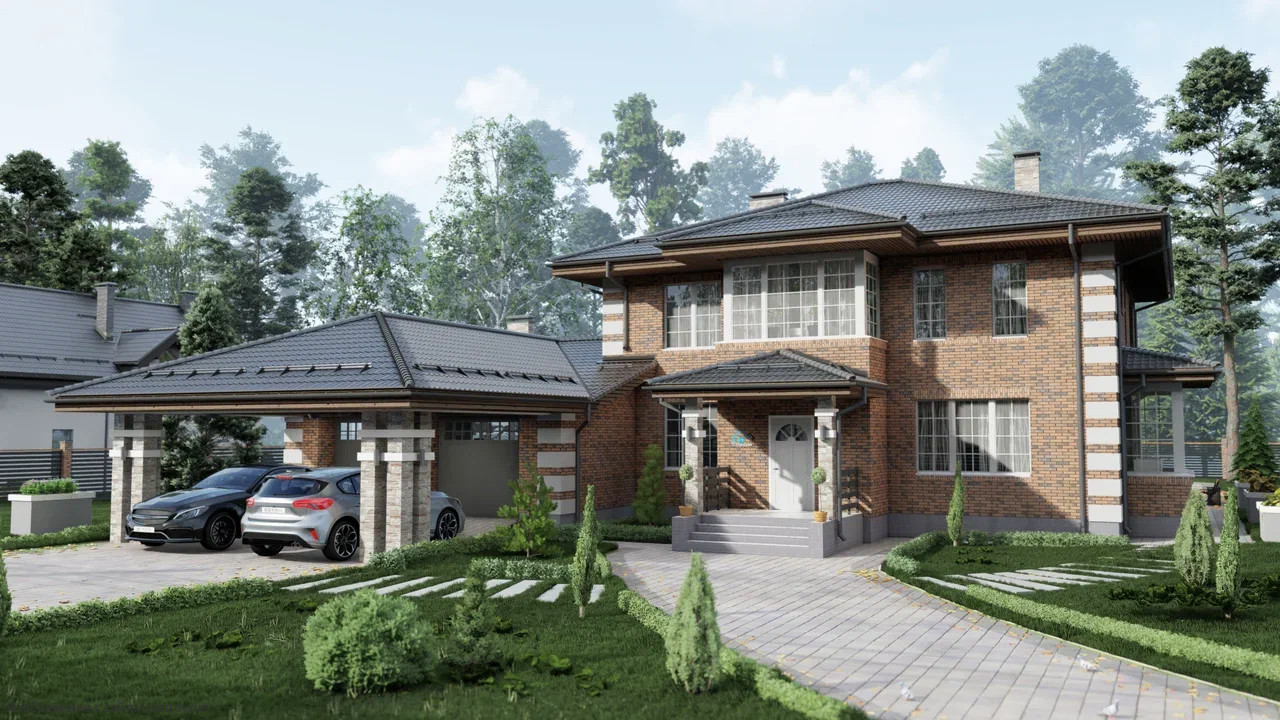 Дом из газобетона площадью 341 м² — это надежность и комфорт. Материал обеспечивает отличную звуко- и теплоизоляцию. Просторные комнаты с высокими потолками создают ощущение простора. Фасад выполнен в современном стиле с минималистичными элементами.Характеристики