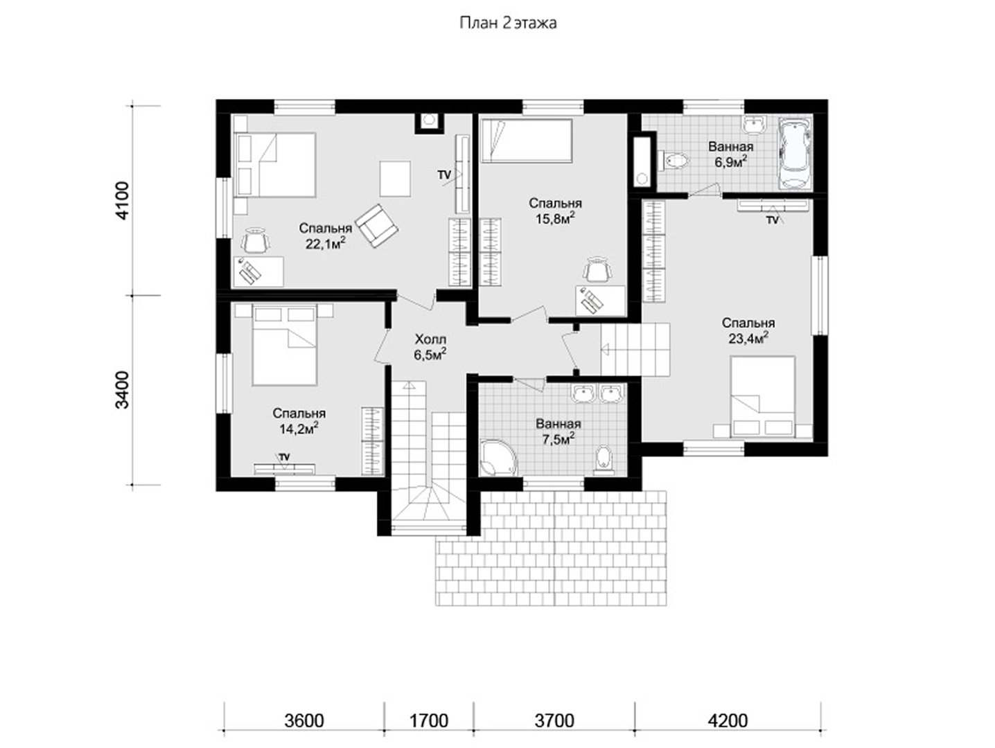 Газобетонный проект 199 м² — это гармония современности и надежности. Два этажа создают ощущение простора и удобства. Три спальни обеспечивают комфорт для всех членов семьи. Материал стен сочетает в себе легкость и отличные теплоизоляционные свойства.Характеристики