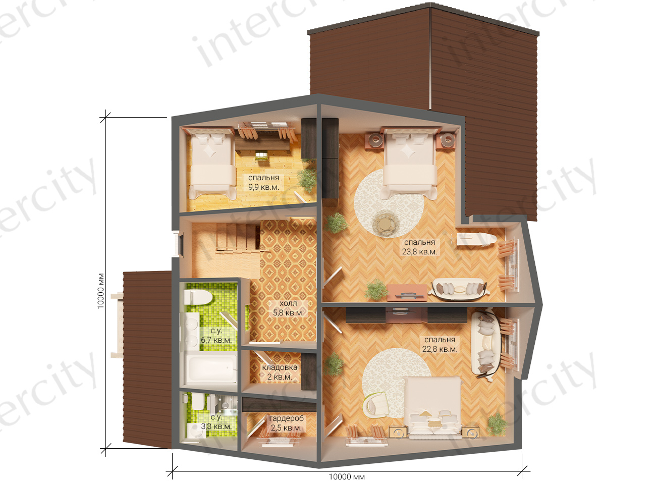 - Тип кровли: Дома с двускатной крышей