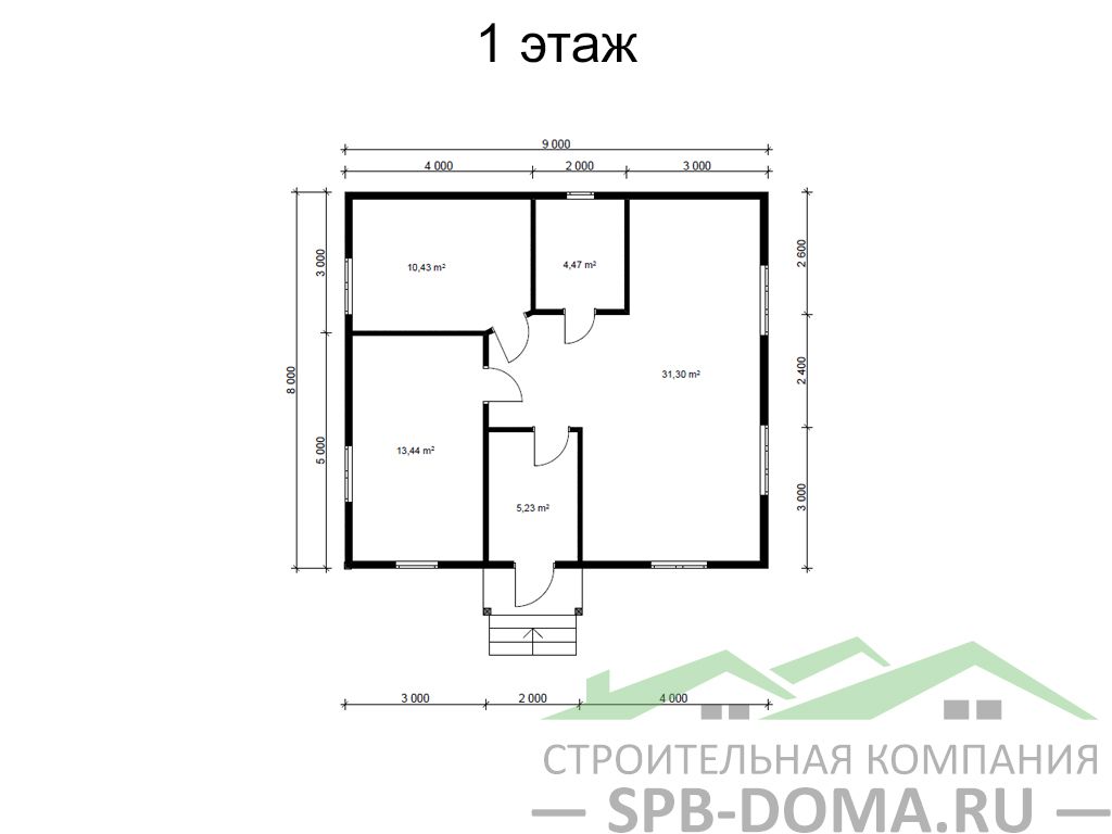 Проект одноэтажного дома Проект каркасного дома 8,0 х 9,0 м «Волосово»