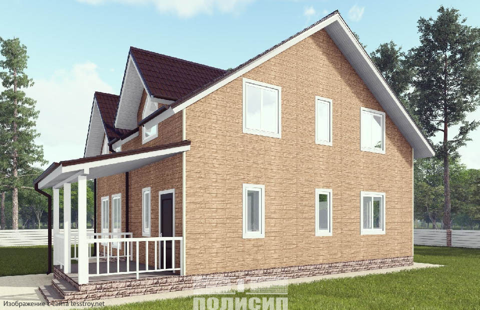 Просторный двухэтажный 200-метровый дом из SIP-панелей. Четыре стильные спальни под мансардной крышей создают образ современного загородного особняка.Характеристики