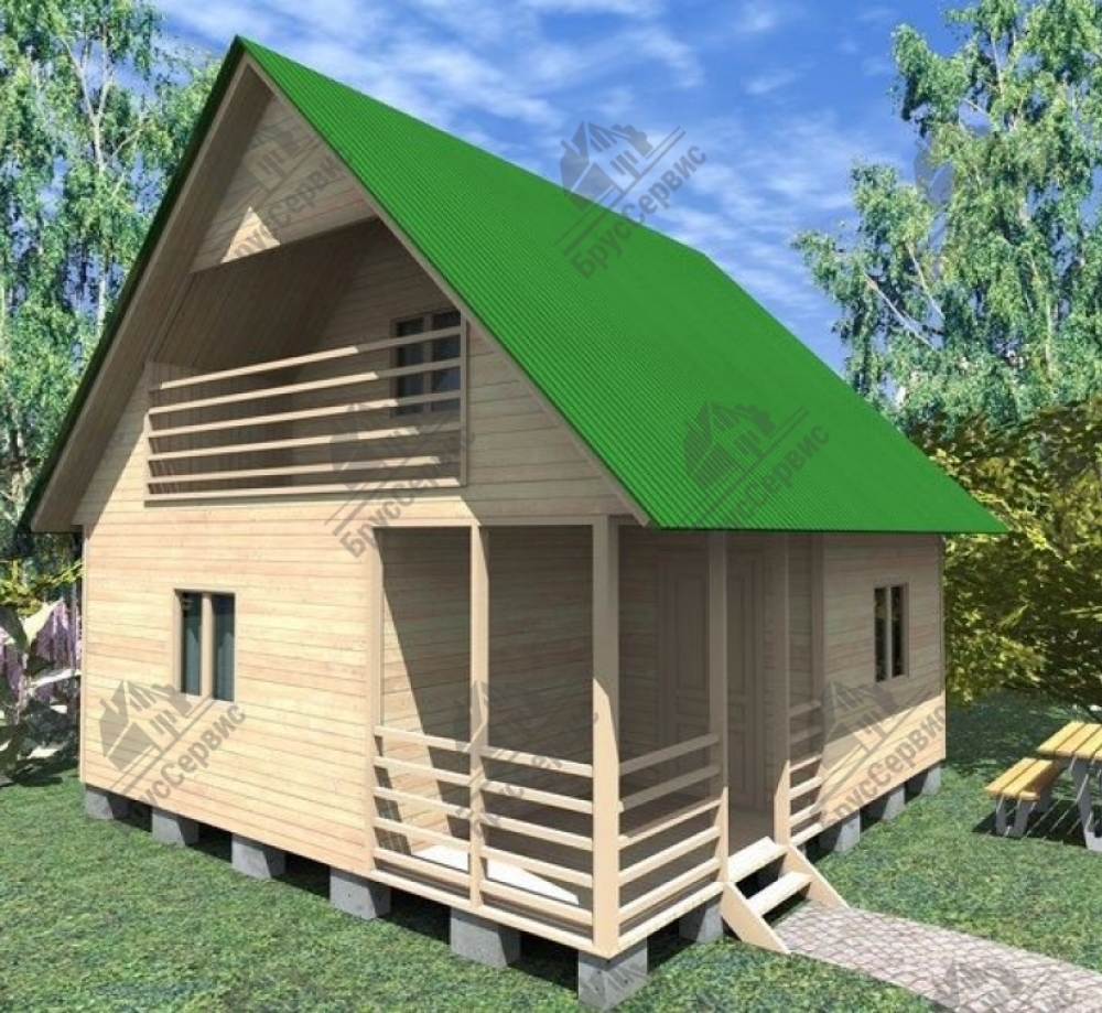 Дом, где завтрак на террасе становится ежедневным ритуалом. С 60 м² удобно и детям, и взрослым. В доме предусмотрено 2 спальни, что важно для комфорта. Крыша из ондулин подчёркивает современный облик дома. Конструкция из Брус обеспечивает прочность и долговечность.Характеристики