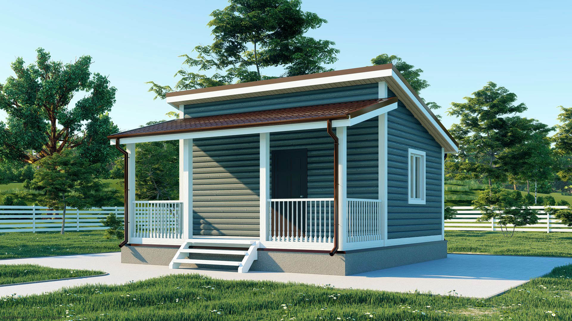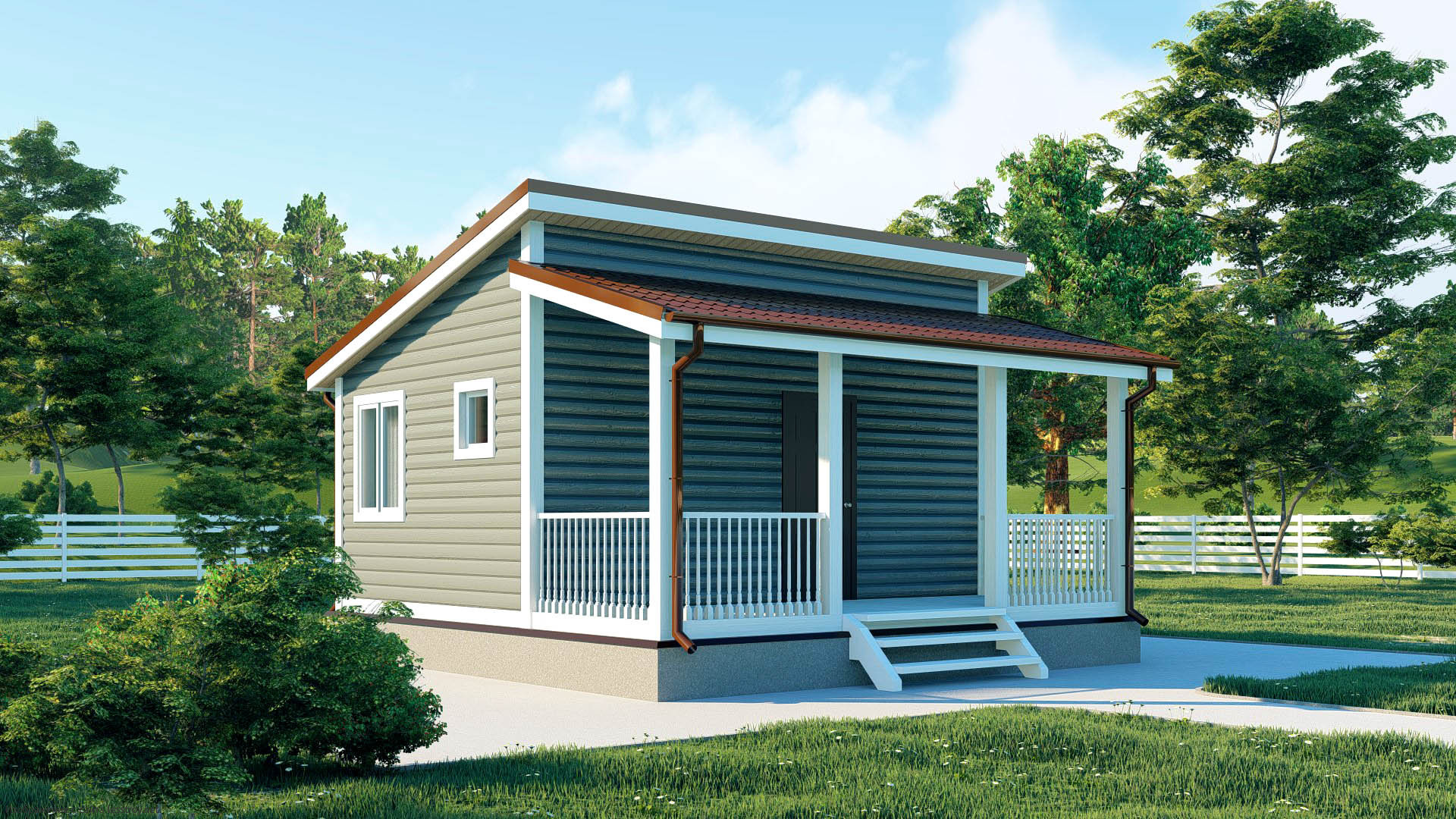 Миниатюрный каркасный дом площадью 36 м² с односкатной кровлей. Один этаж с одной спальней - предельно простое решение. Идеальный вариант для строительства при ограниченном бюджете. Компактное жилье для временного проживания.Характеристики