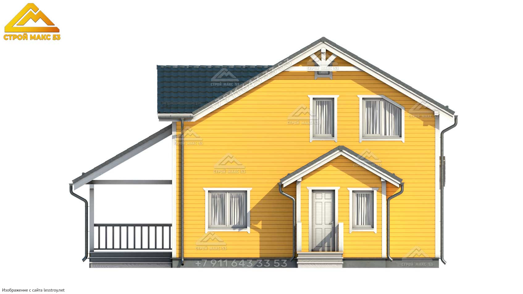 Проект двухэтажного дома Каркасный дом 8х8 с большой террасой (К-37)