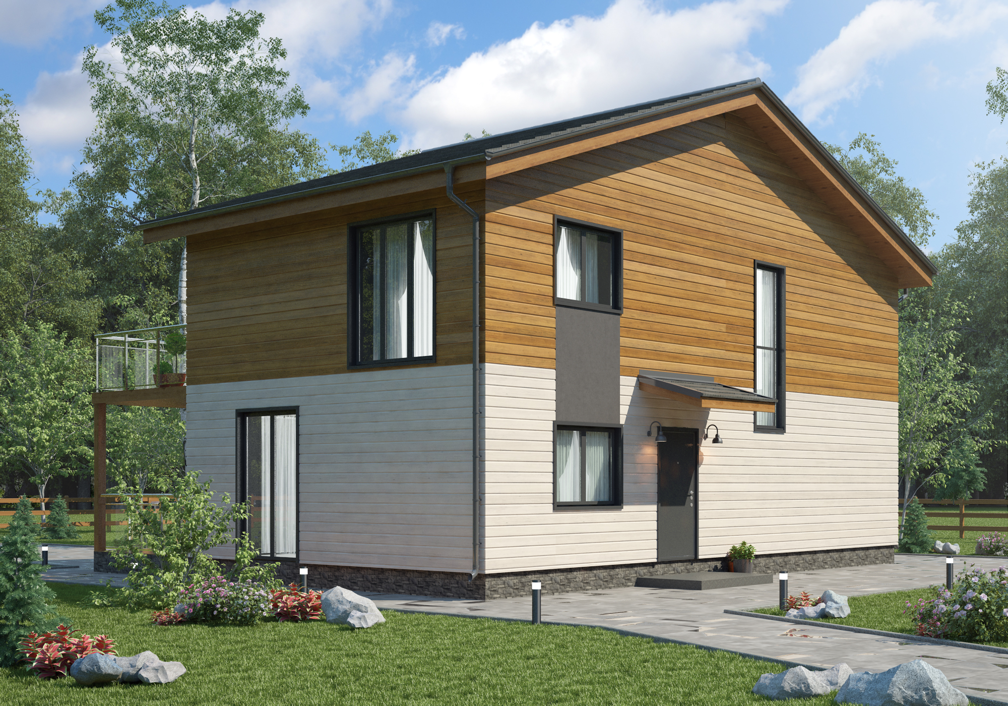 Проект двухэтажного дома Проект 1240 - финский каркасный дом с мансардным этажом