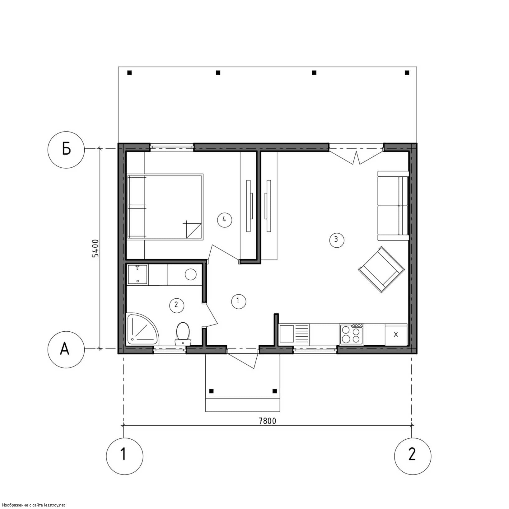 - Общая площадь: 42 м2