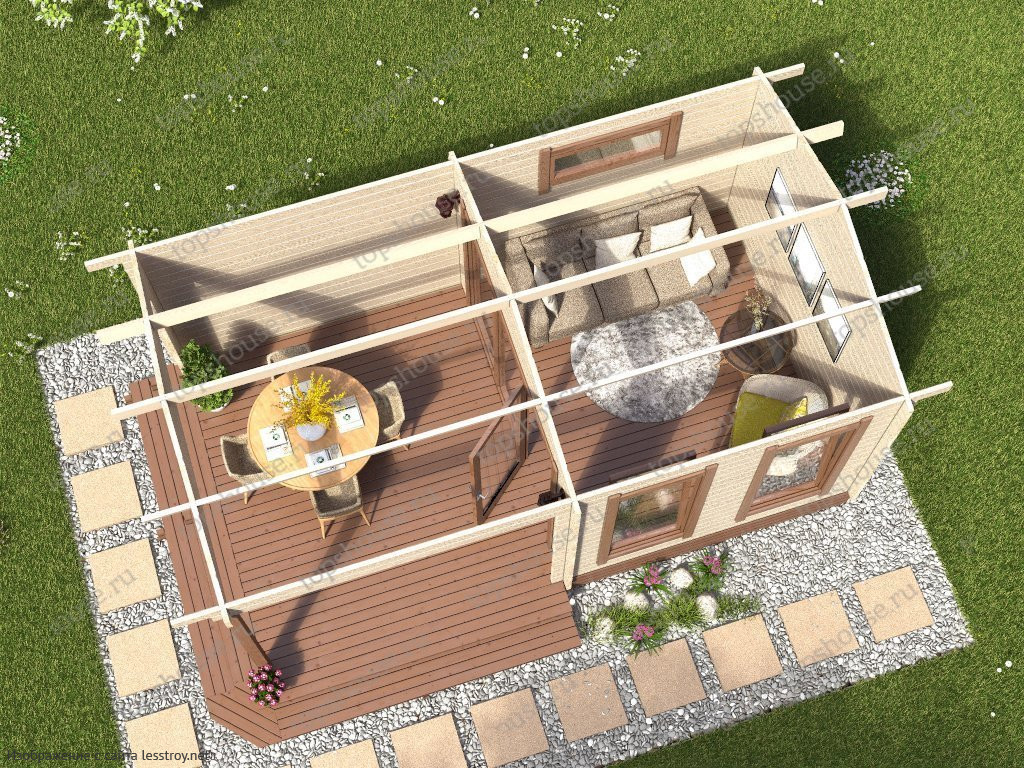 Компактный садовый дом площадью 21 м² из минибруса с композитной черепицей подходит для дачного отдыха. Одна спальня обеспечивает уютное пространство. Натуральные материалы делают его экологичным. Проект идеален для тех, кто ценит минимализм и удобство.Характеристики