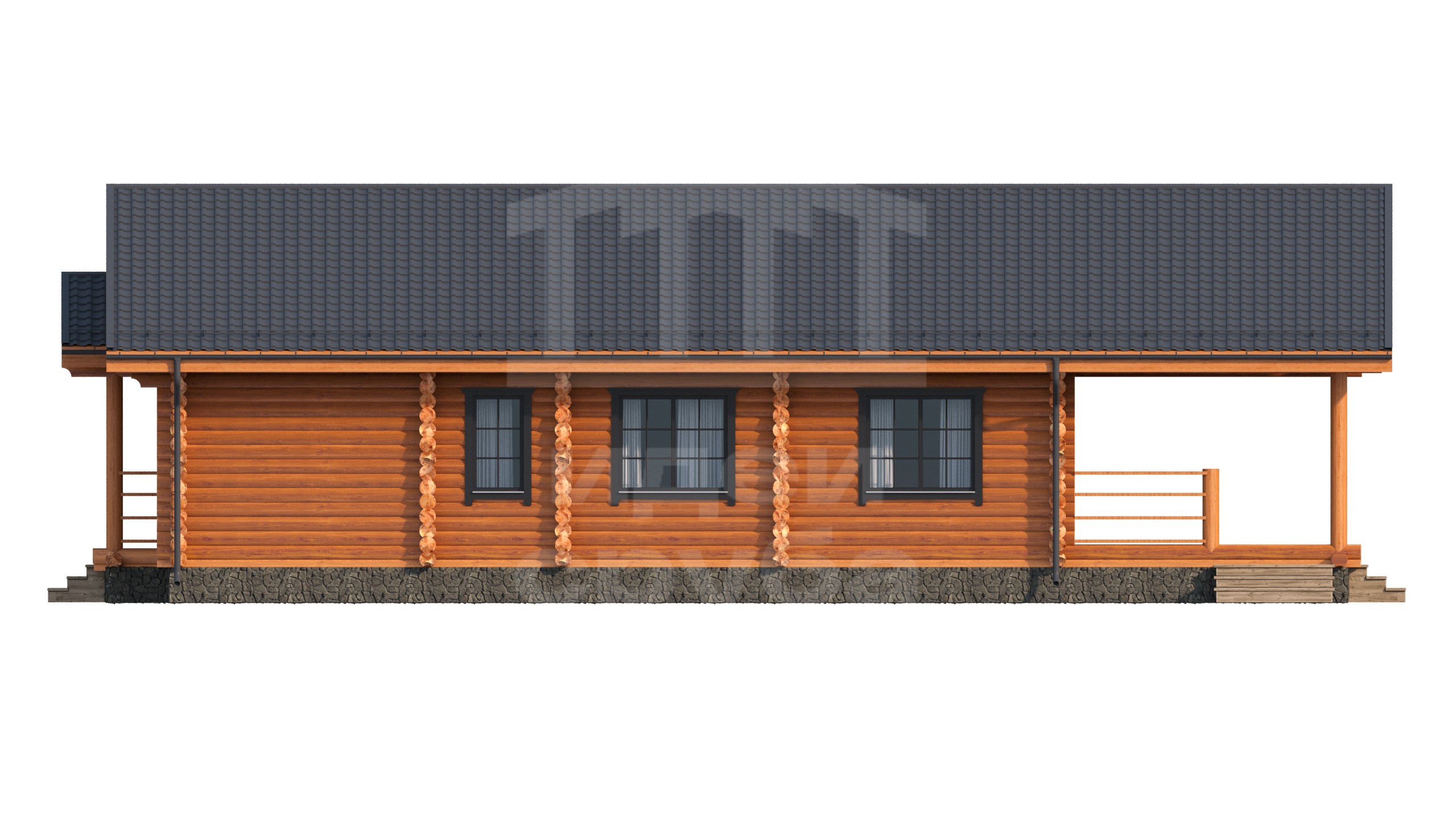 Просторный дом из бревна площадью 230 м² с четырьмя спальнями в стиле кантри идеален для большой семьи. Один этаж и металлочерепичная кровля делают его надежным. Натуральное дерево создает уютную атмосферу. Проект «Сергиев Посад» — это воплощение традиций и комфорта.Характеристики