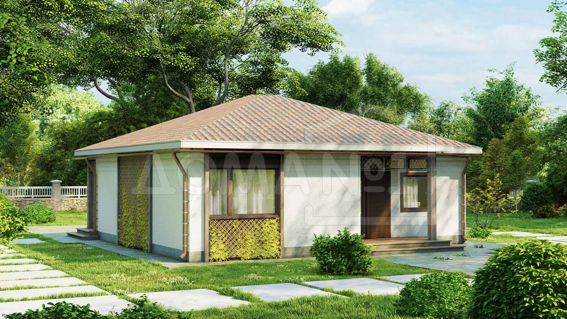 - Тип кровли: Дома с четырехскатной крышей (вальмовой)