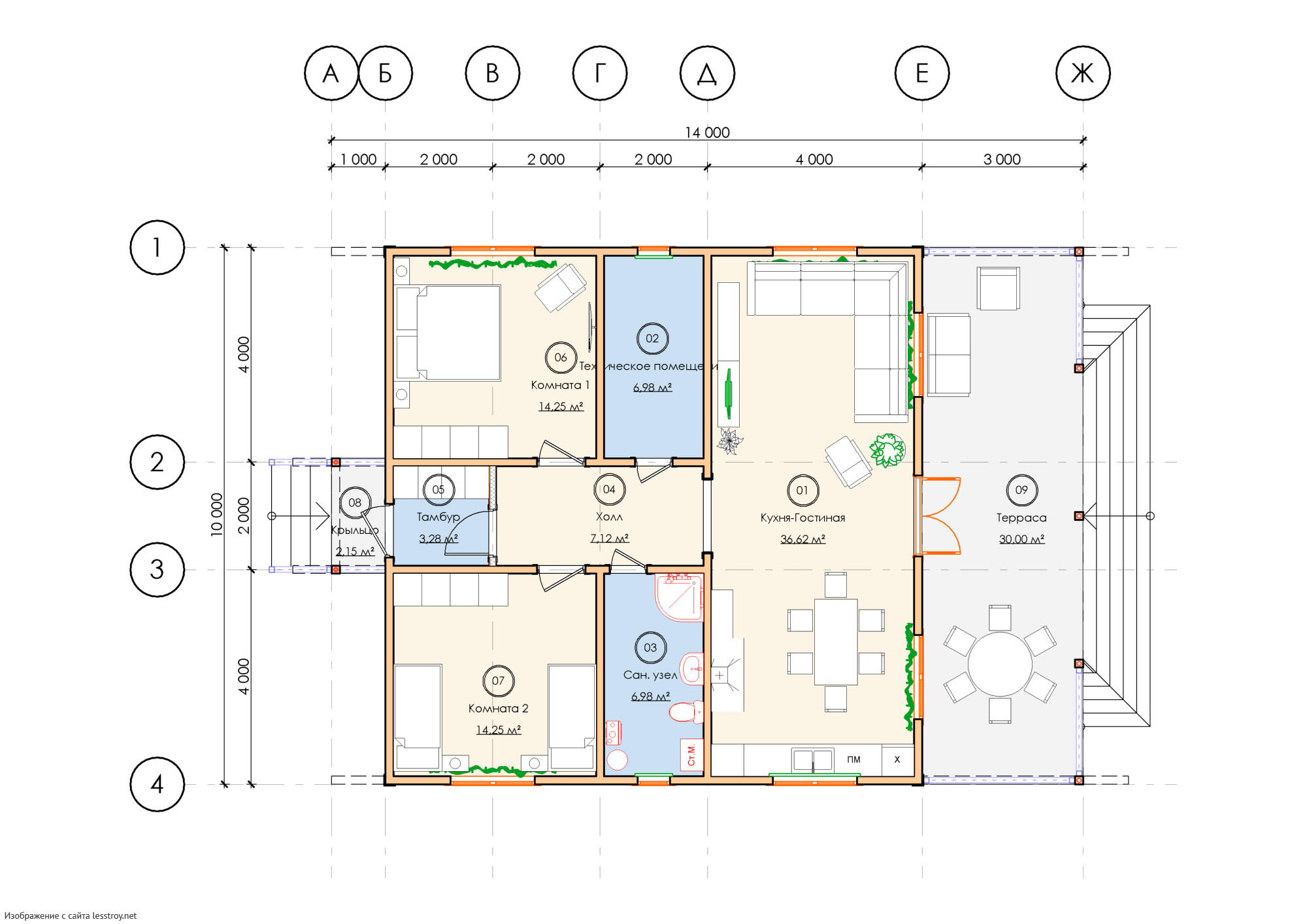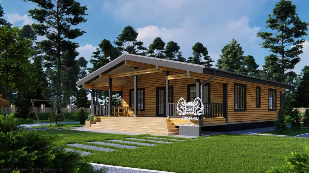 Проект одноэтажного дома Шале из бруса камерной сушки