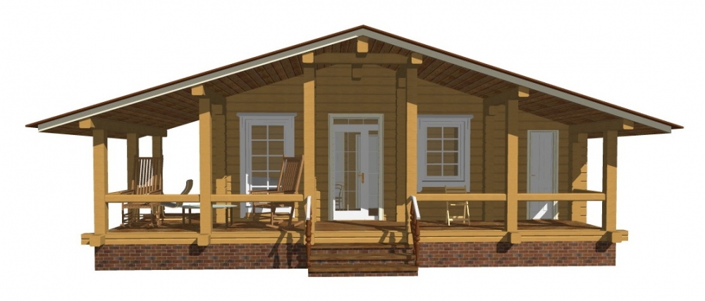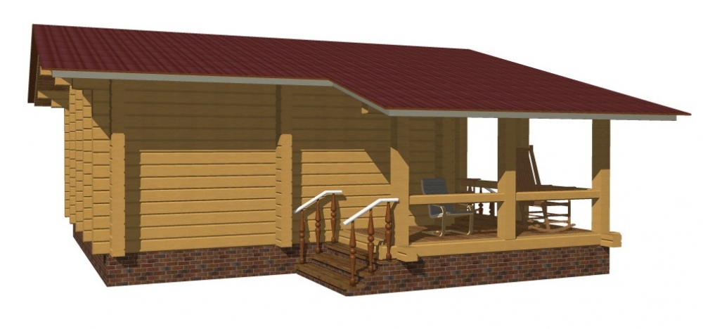 Проект одноэтажного дома Шале из профилированного бруса с террасой