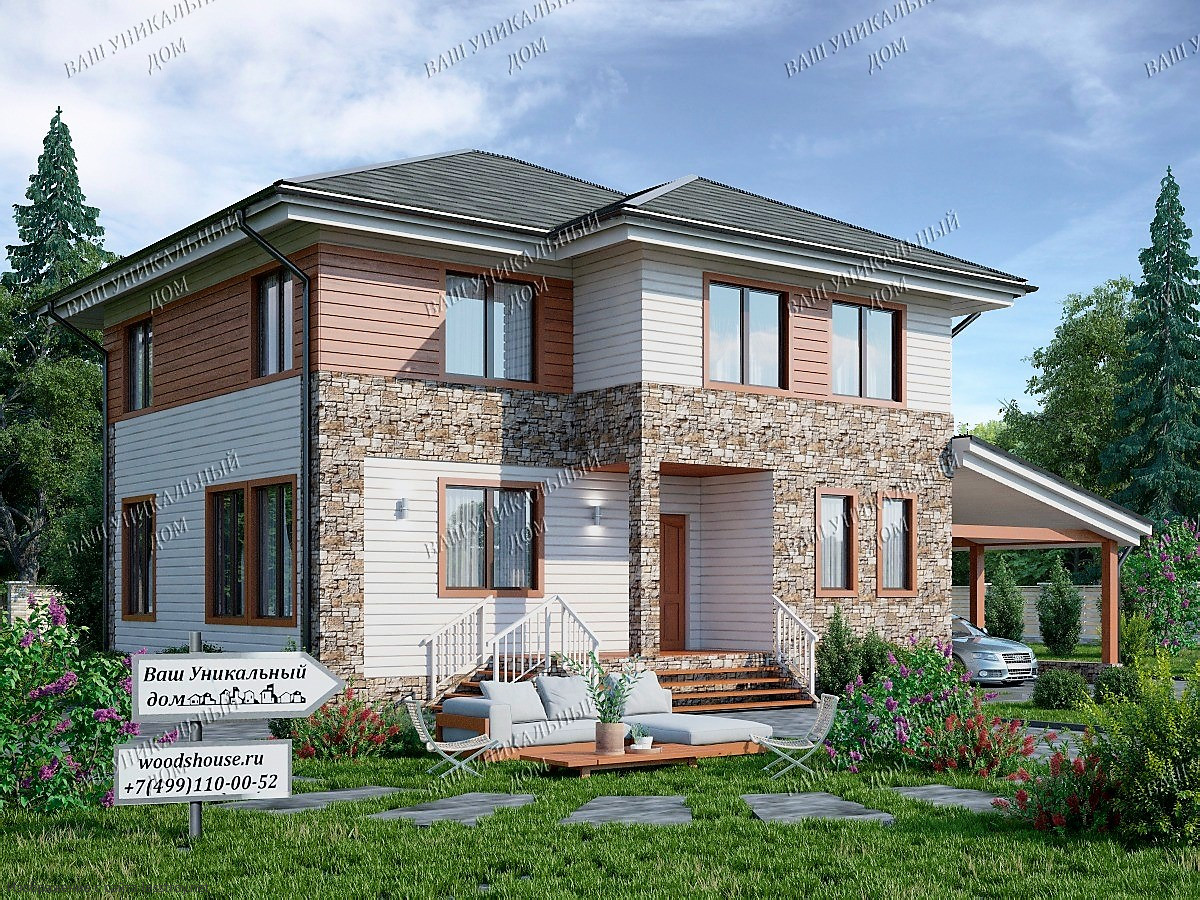Проект, ставший материальным воплощением семейного счастья. Тёплый и уютный объём — 210 м². Стены из Каркас хорошо держат тепло и защищают от шума. Двухэтажная уютная планировка организует пространство максимально эффективно. Крыша из металлочерепица подчёркивает современный облик дома.Характеристики