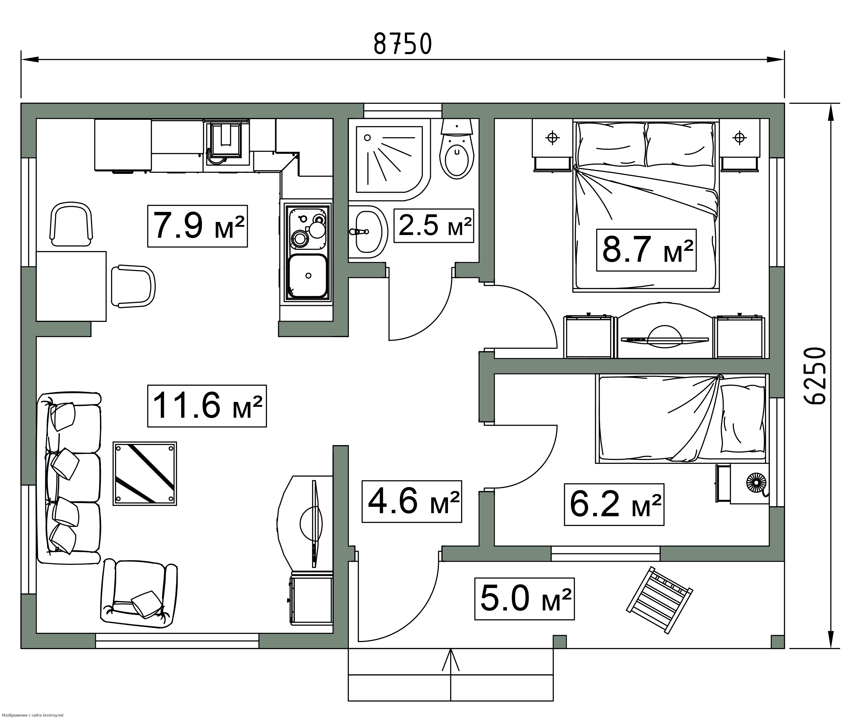 - Общая площадь: 46 м2