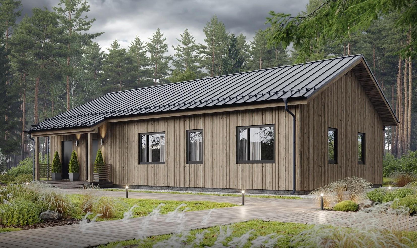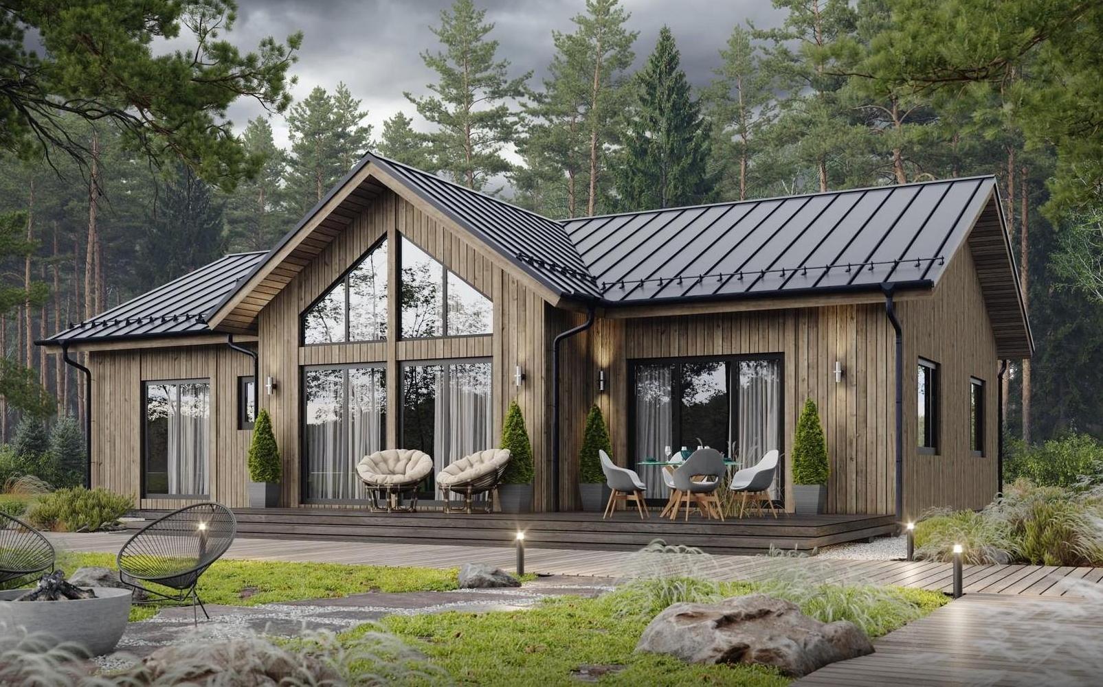 - Комплект несущих силовых элементов заводского изготовления (балки межэтажного перекрытия LVL-брус, балки и столбы из клееного бруса и/или LVL-бруса, фермы на металлозубчатых пластинах MITEK