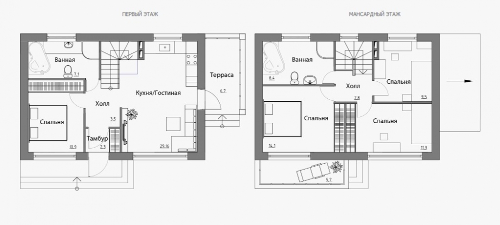 - Тип кровли: Дома с двускатной крышей