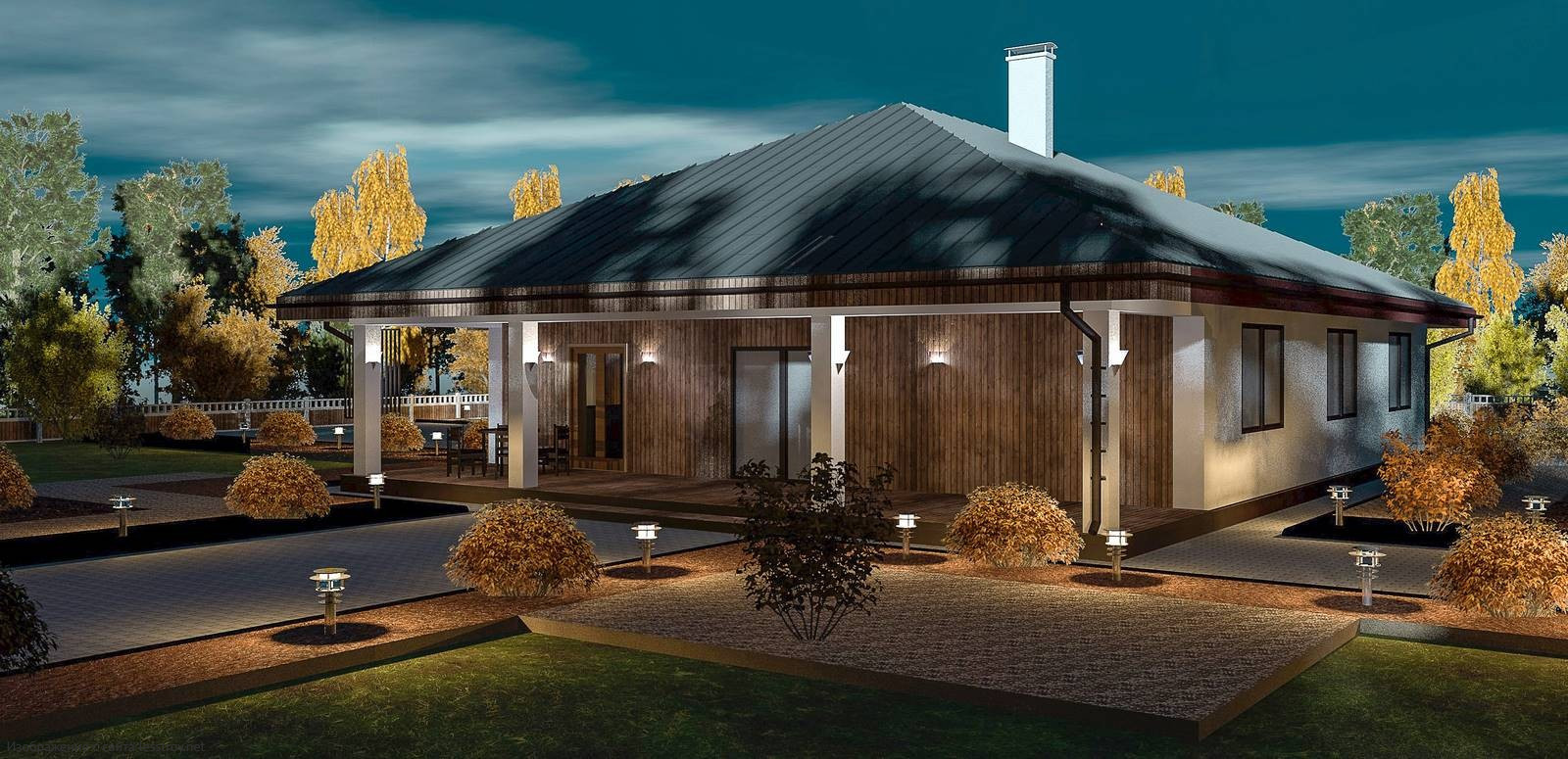 - Тип кровли: Дома с четырехскатной крышей (вальмовой)