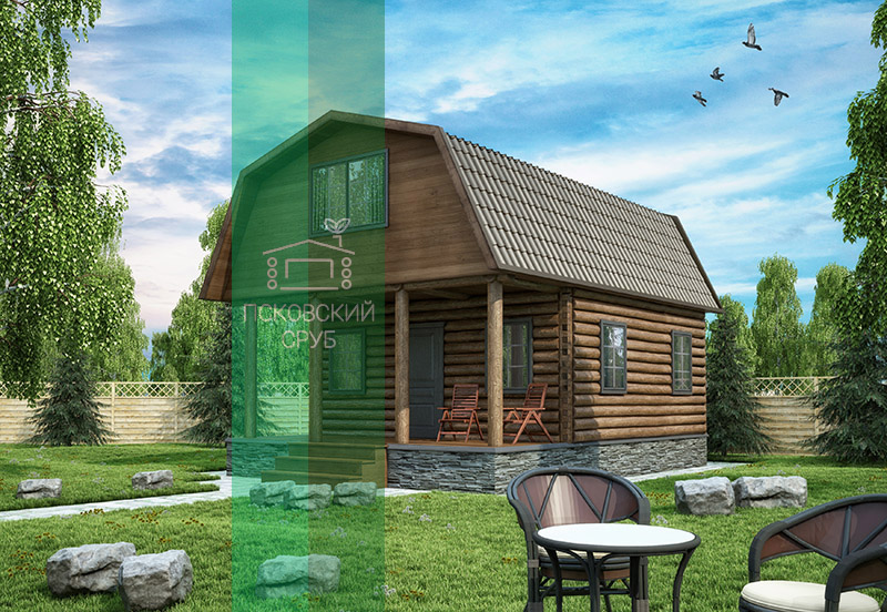 Проект двухэтажного дома Сруб дома 6х6 с террасой 2 метра доставка установка включены.