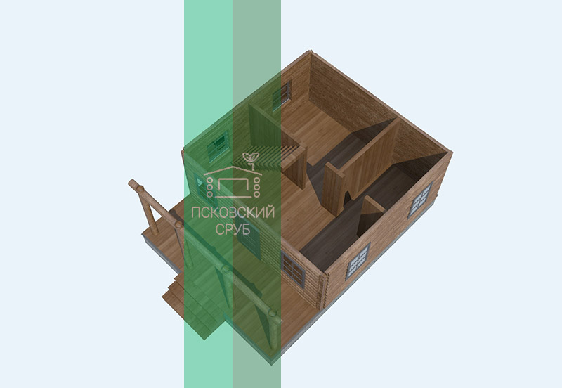 Проект двухэтажного дома Сруб дома 6х6 с террасой и мансардой