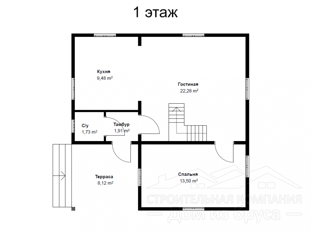 Проект двухэтажного дома Сруб дома из профилированного бруса 8,0 х 8,0 м «Белоостров»